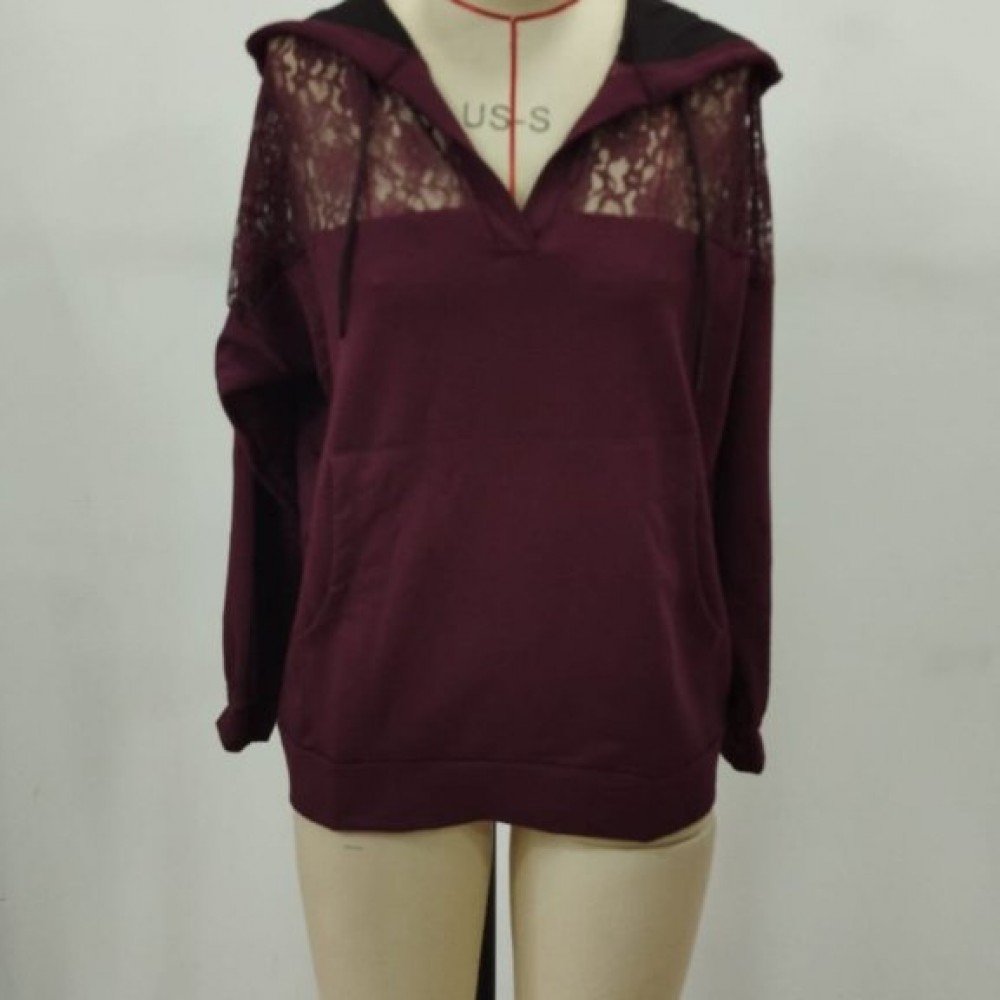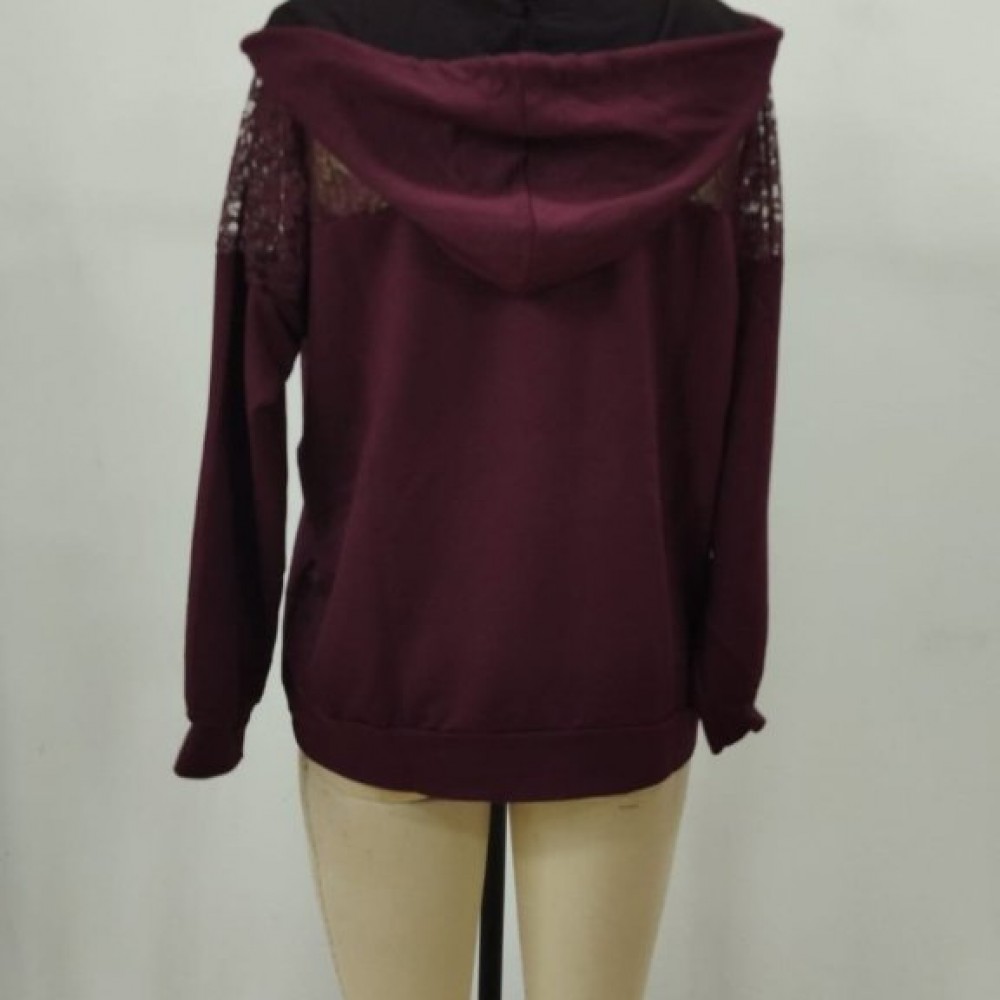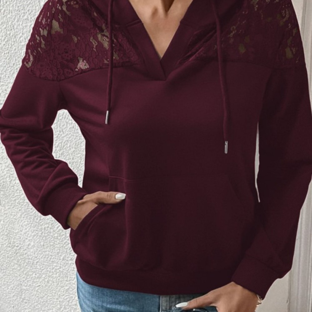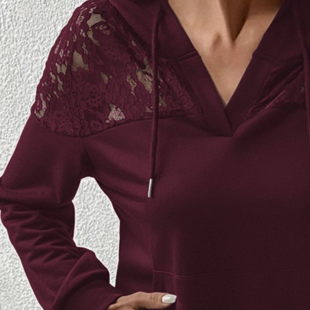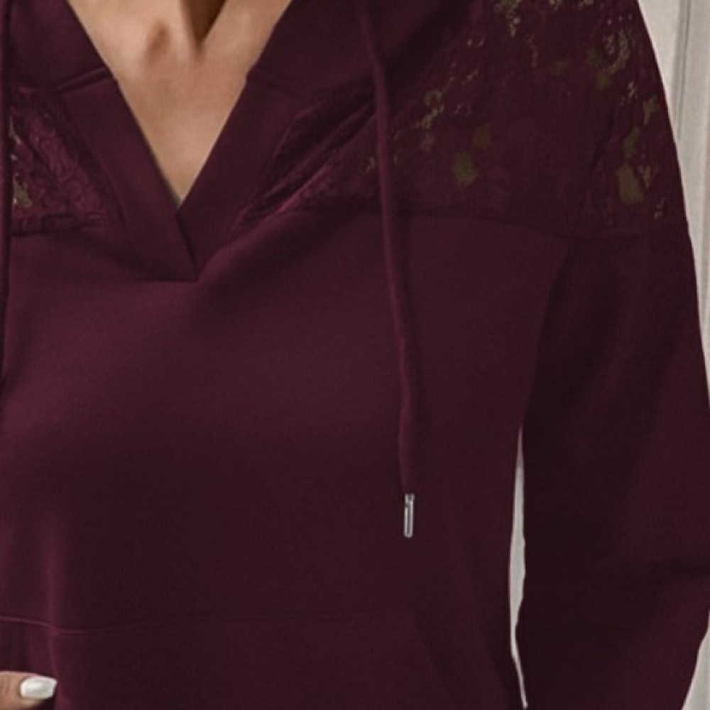 Kadın Uzun Kollu Kapşonlu Bağcıklı Dantelli Viskon Iki Iplik Bluz