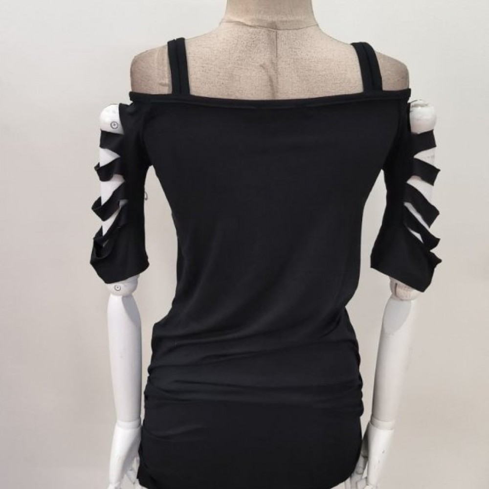 K72382-SIYAH BORDO BLUZ