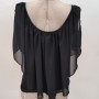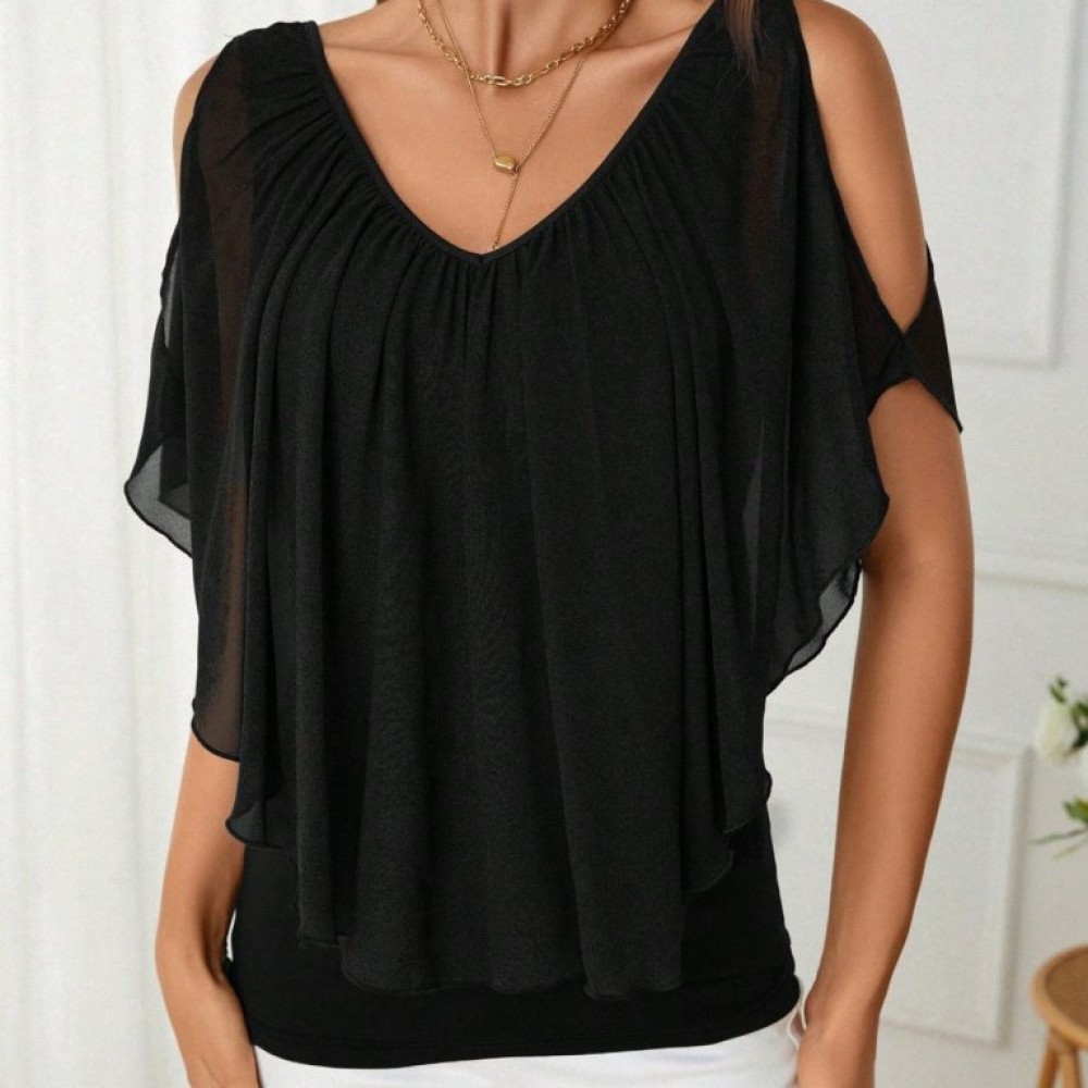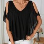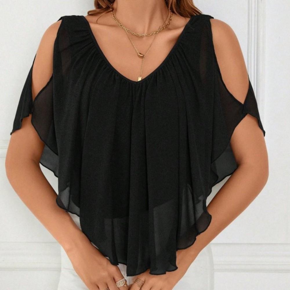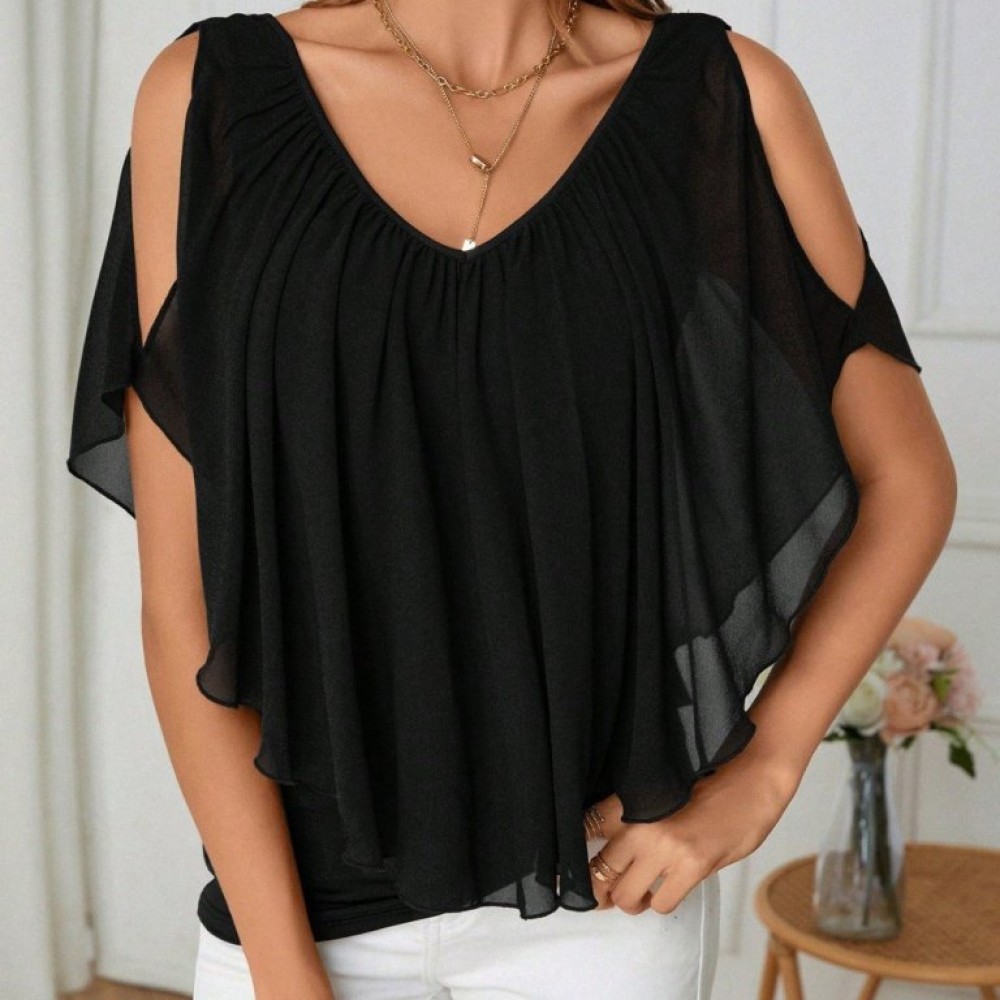 Kadın Kısa Kollu V Yakalı Omuzlardan Açık Salaş şifon Bluz