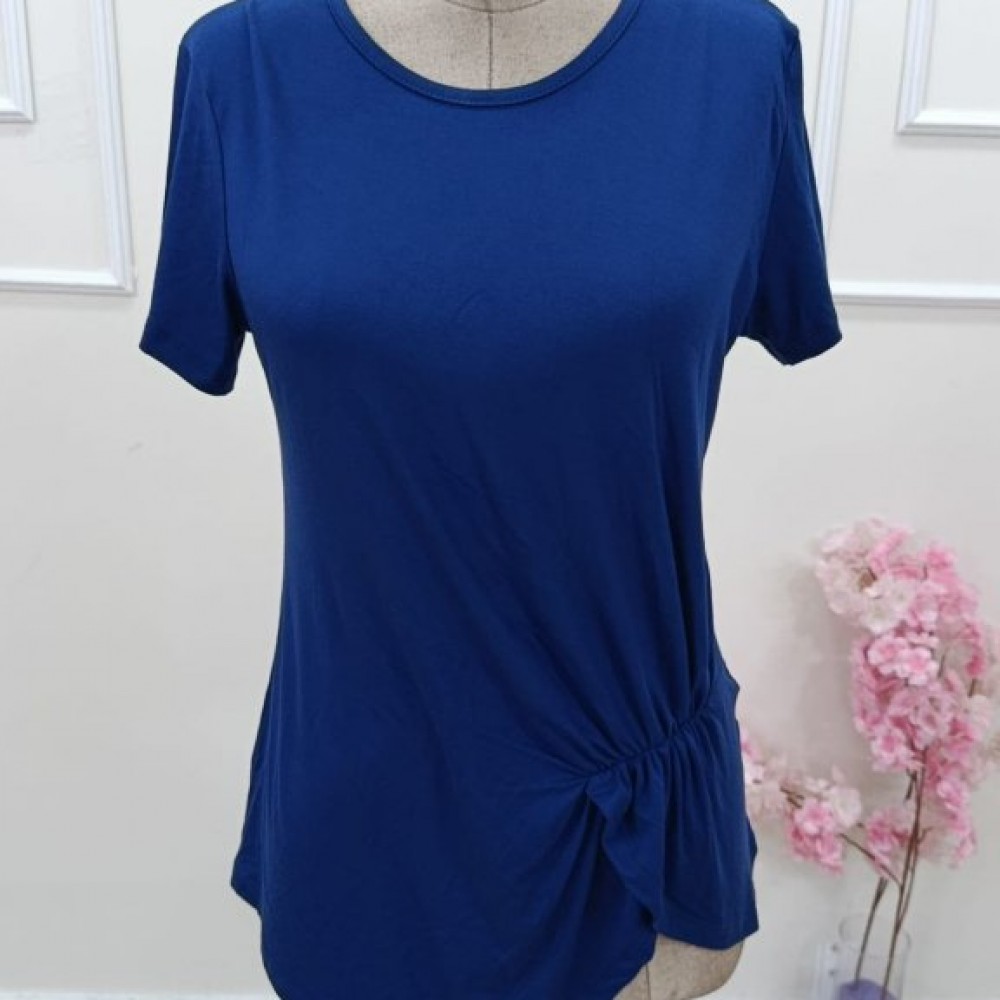 Kadın Kısa Kollu Bisiklet Yaka Asimetrik Kesim Detaylı Viskon Bluz