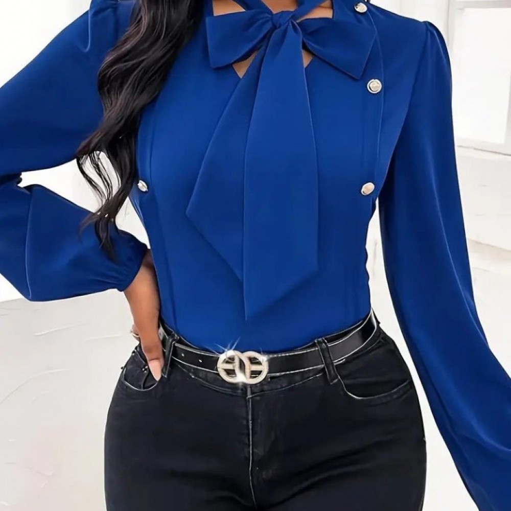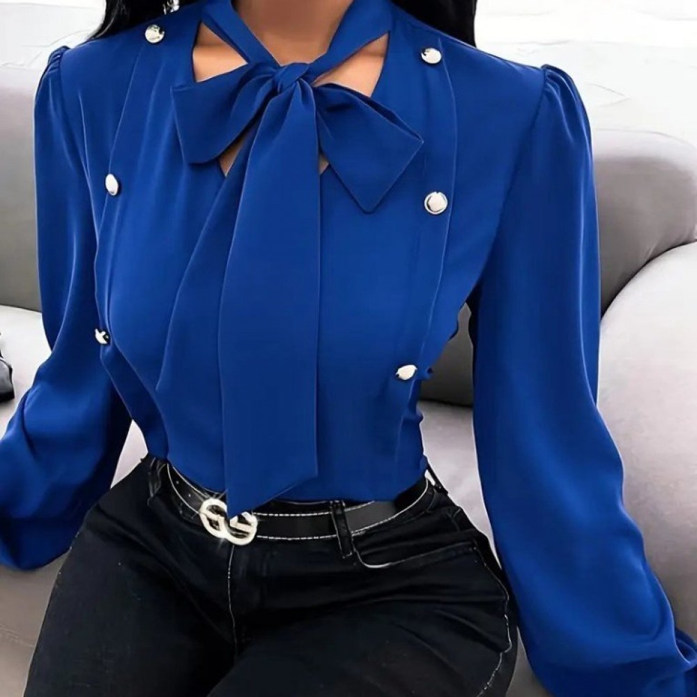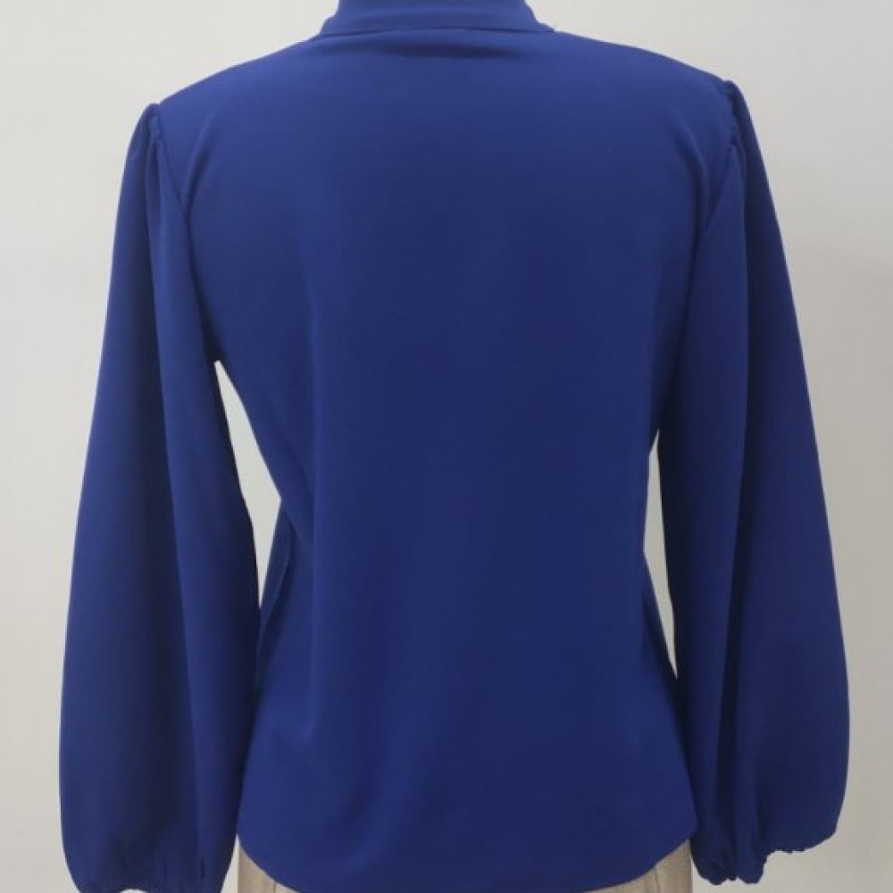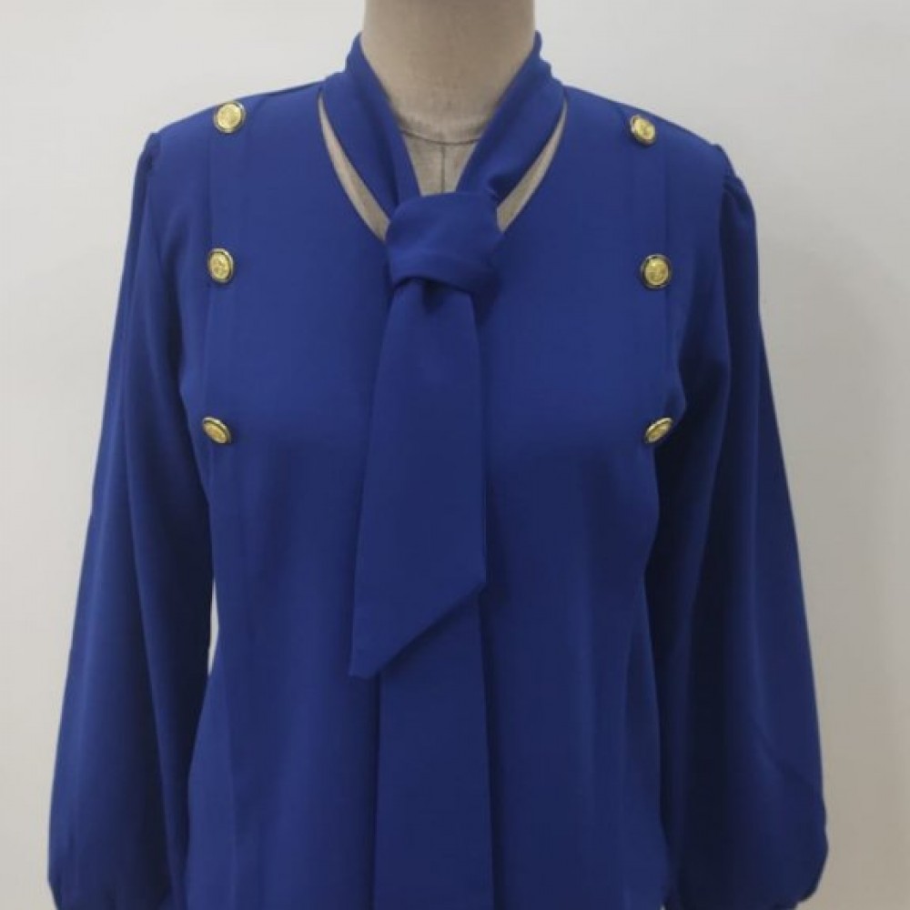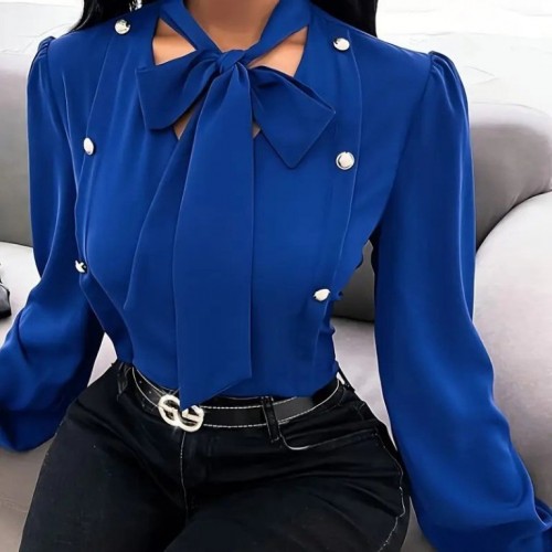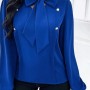 Kadın Uzun Kollu Yakası Fiyonklu Düğmeli Ithal Krep Bluz
