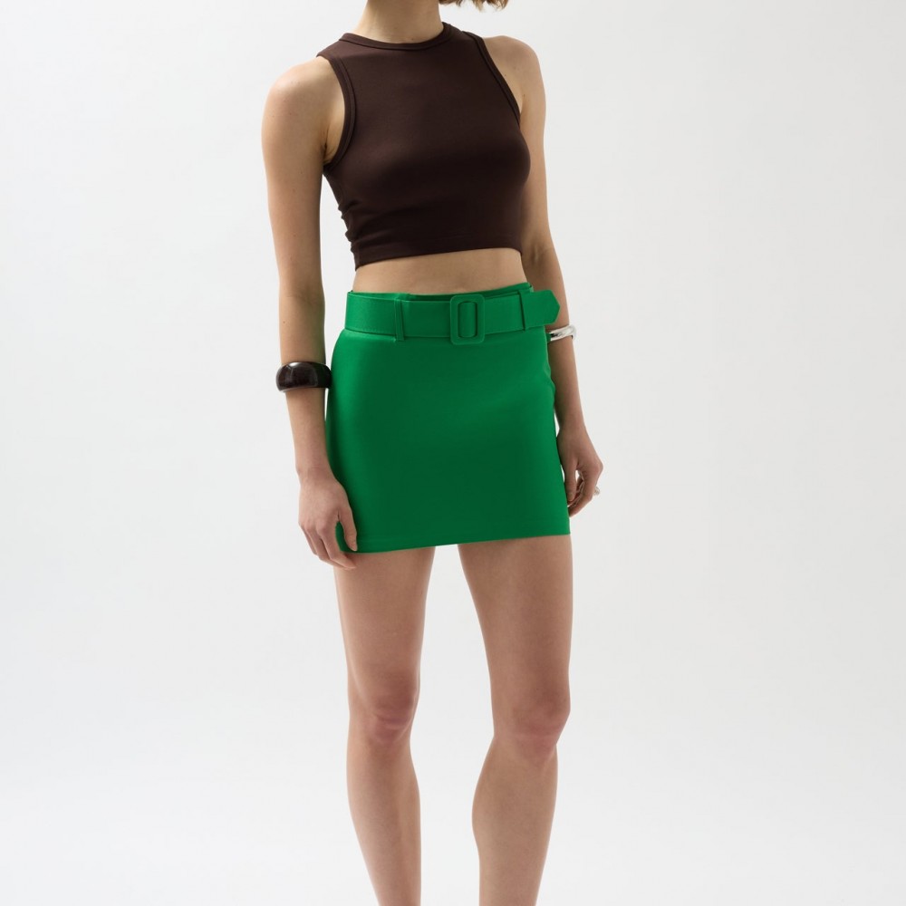 Kemerli Yüksek Bel Vücuda Yapışan Mini Denim Etek Manken Ölçüleri : Gö