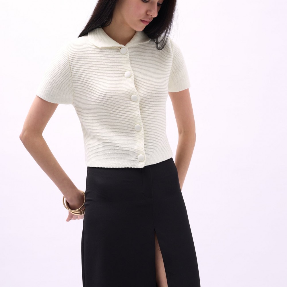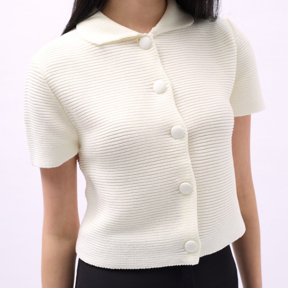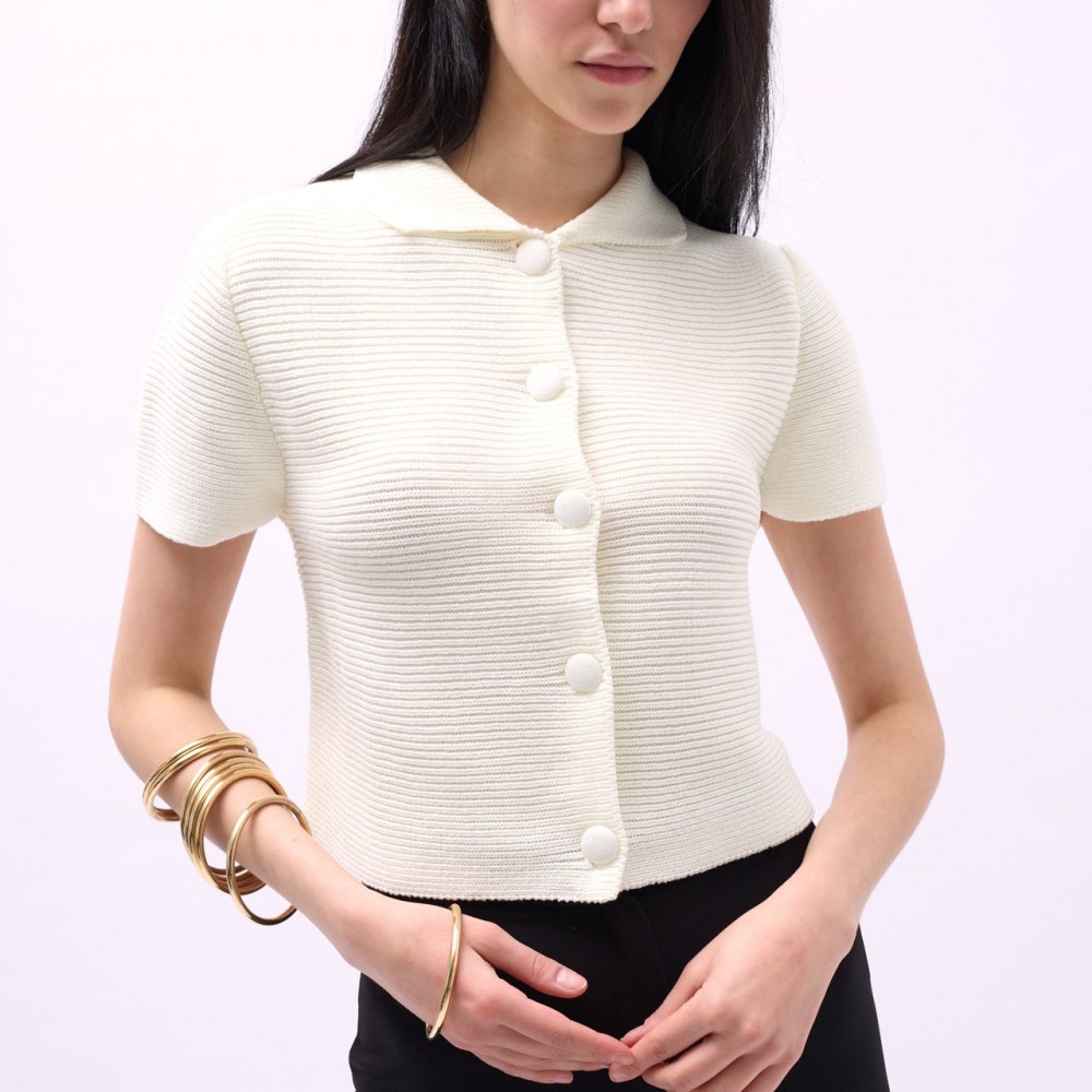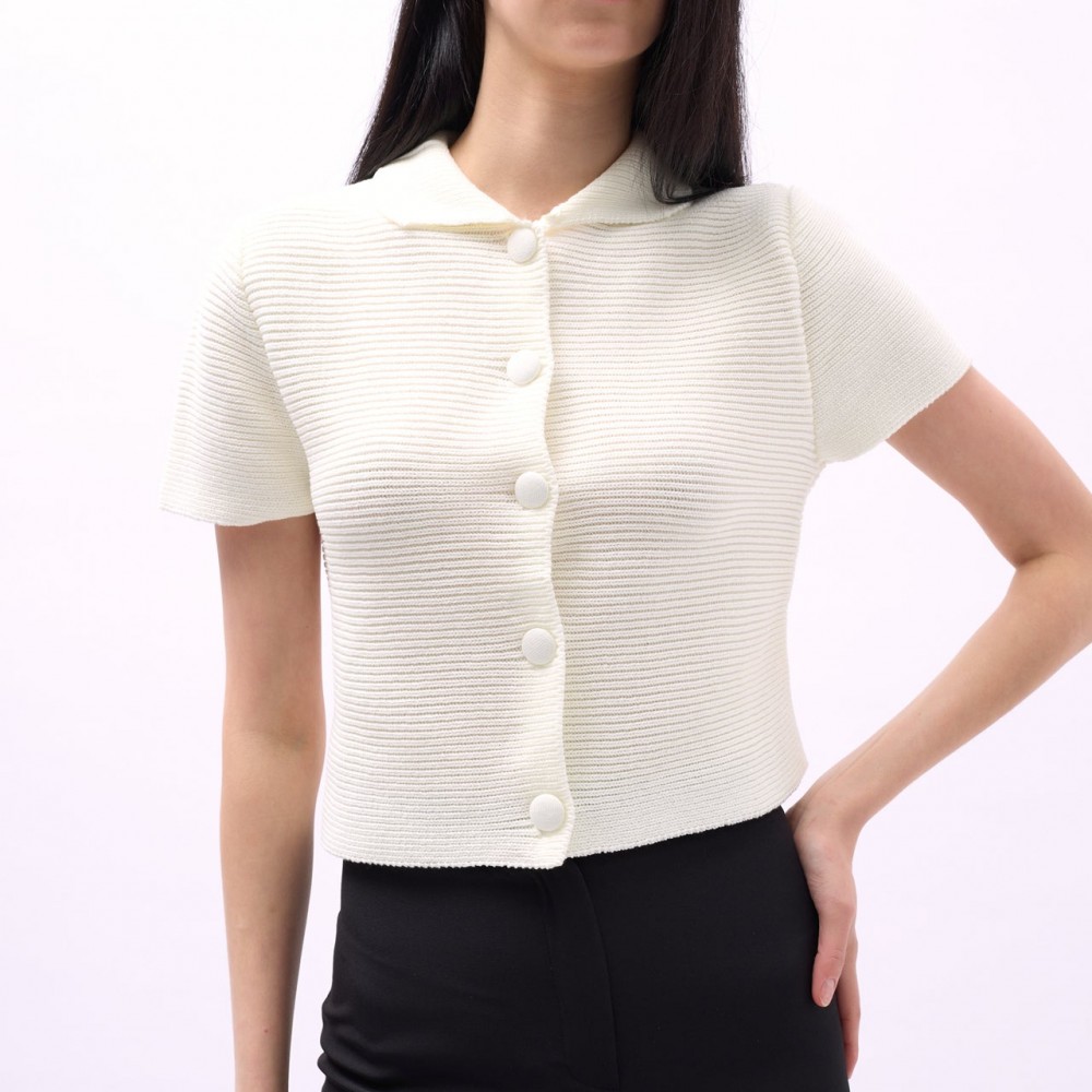 Kısa Kol, Polo Yaka, Düğmeli, Triko Örgü Crop Bluz Manken Ölçüleri : G