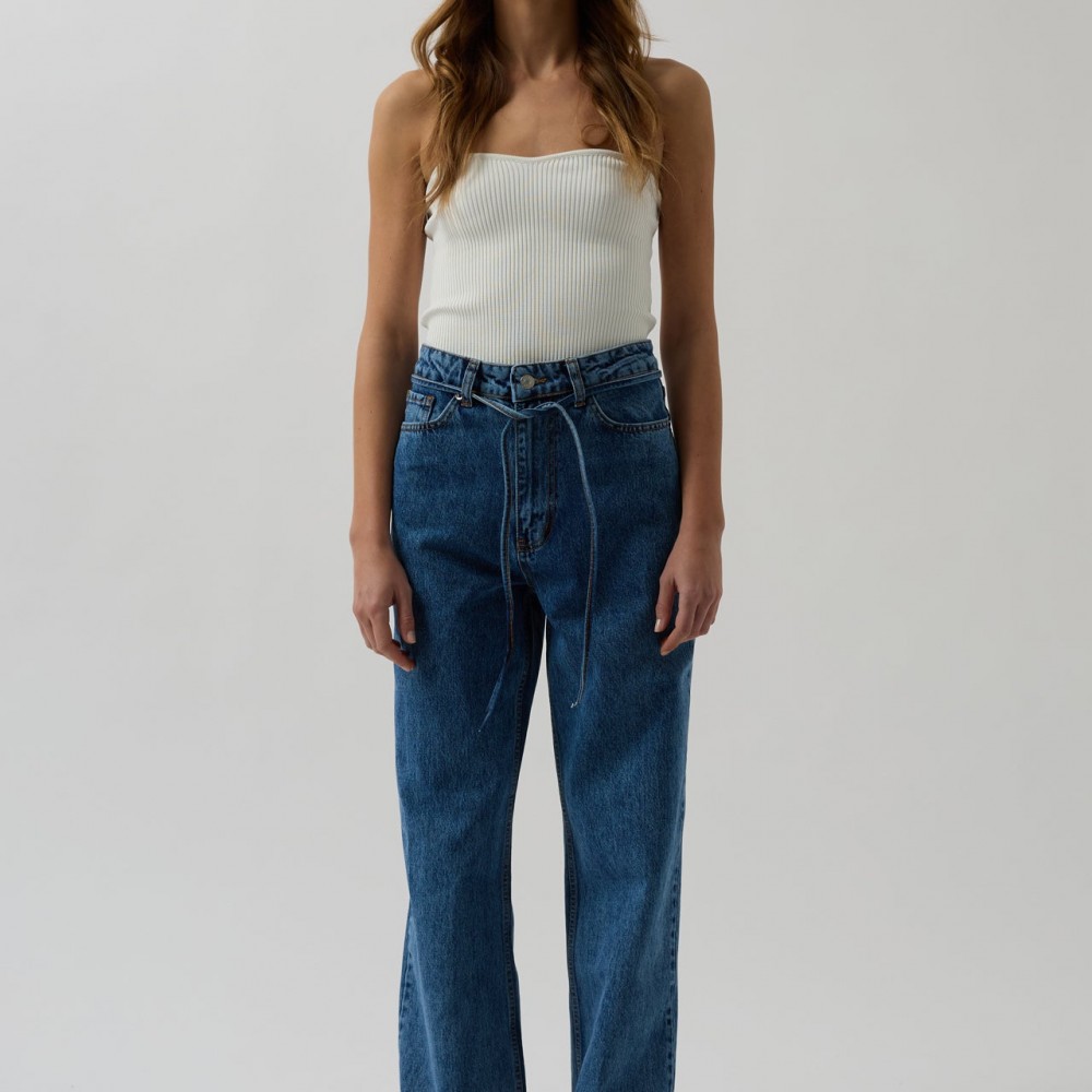 Beli Bağcıklı, 5 Cepli, Fermuarlı Ve Düğmeli, Düz Kesim Denim Pantolon