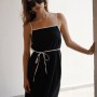 Kontrast Biye Ve Askı Detaylı, Rahat Kesimli, Uzun Keten Elbise Manken