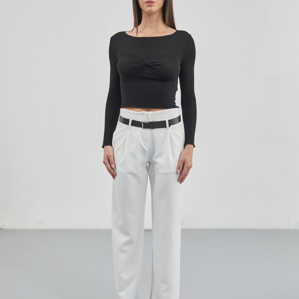 Kemerli, Pileli Ve Fermuarlı, Çift Cepli, Düz Kesim Yüksek Bel Pantolo