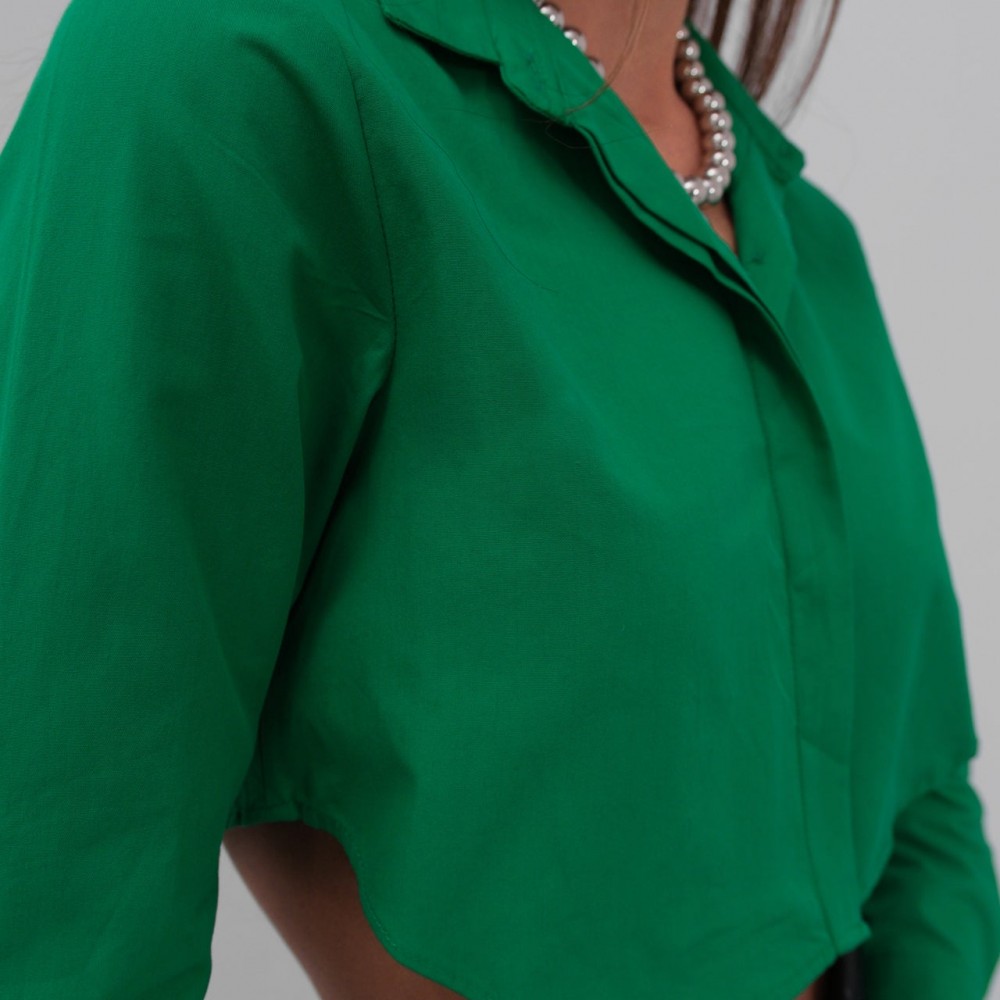 Uzun Manşet Detaylı, Uzun Kollu, Crop, Düğmeli, Gömlek Yaka, Katlamalı