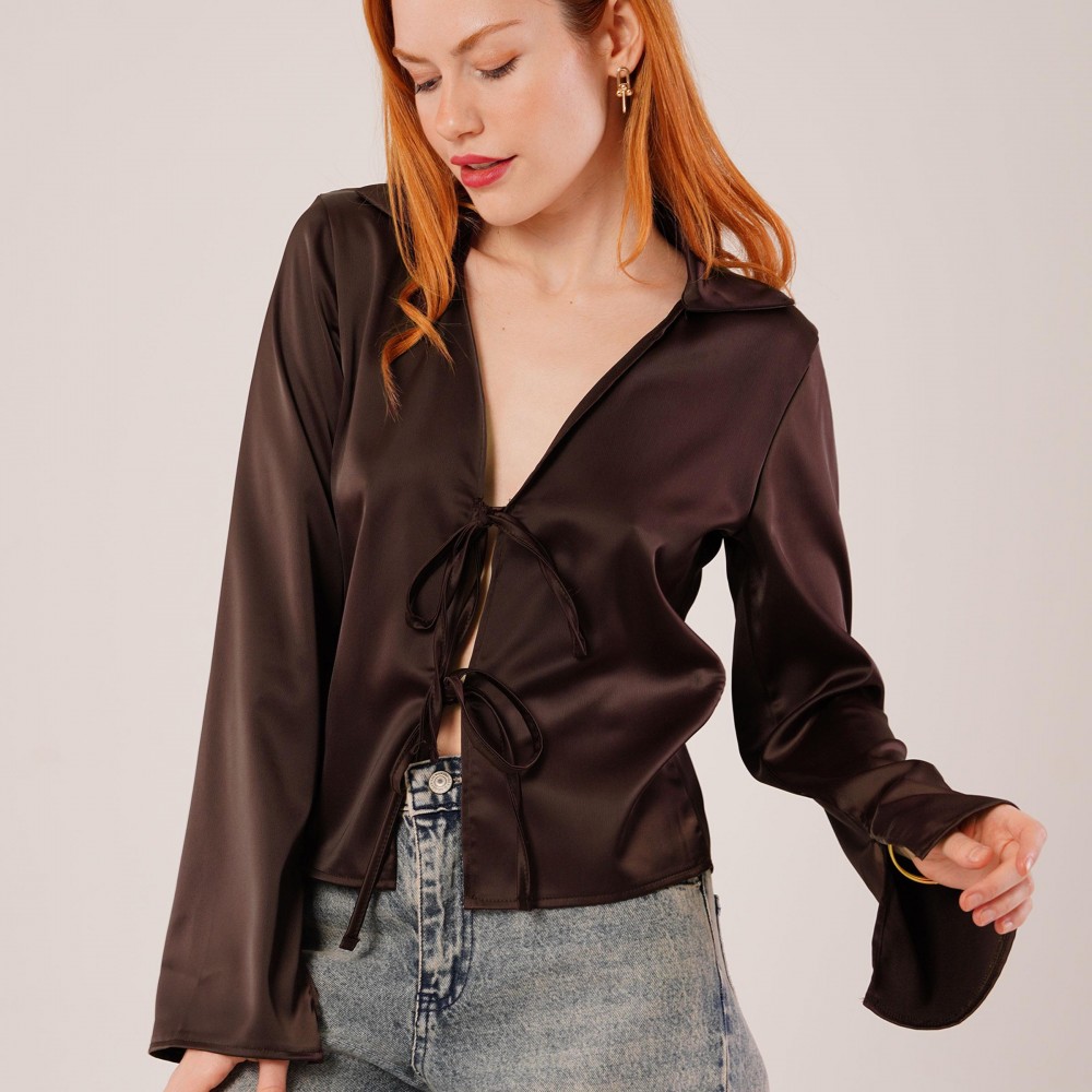 H4714-KAHVE-L KAHVERENGI BLUZ