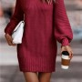 Kadın Uzun Kollu Balıkçı Yaka Mini Triko Elbise