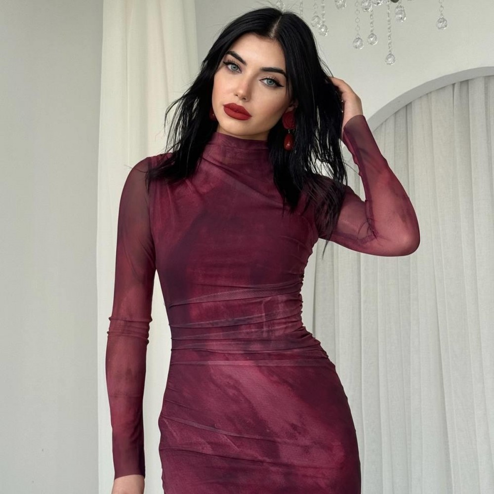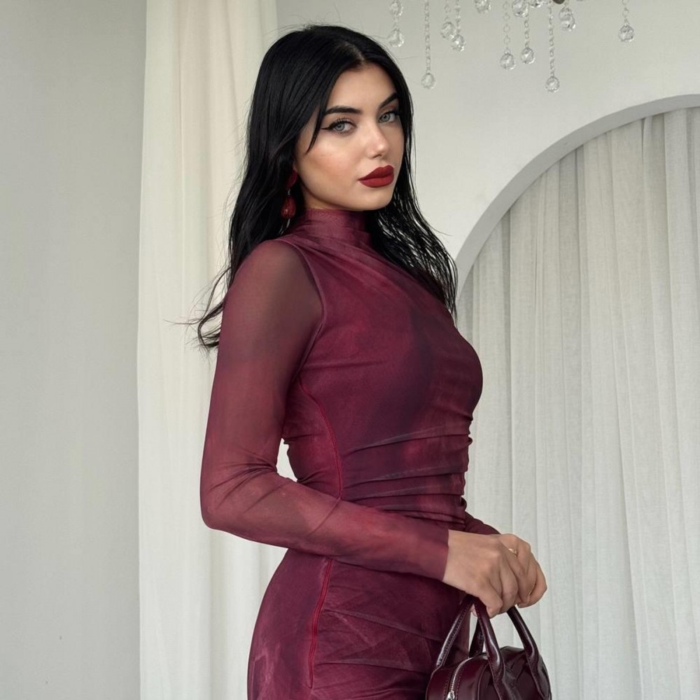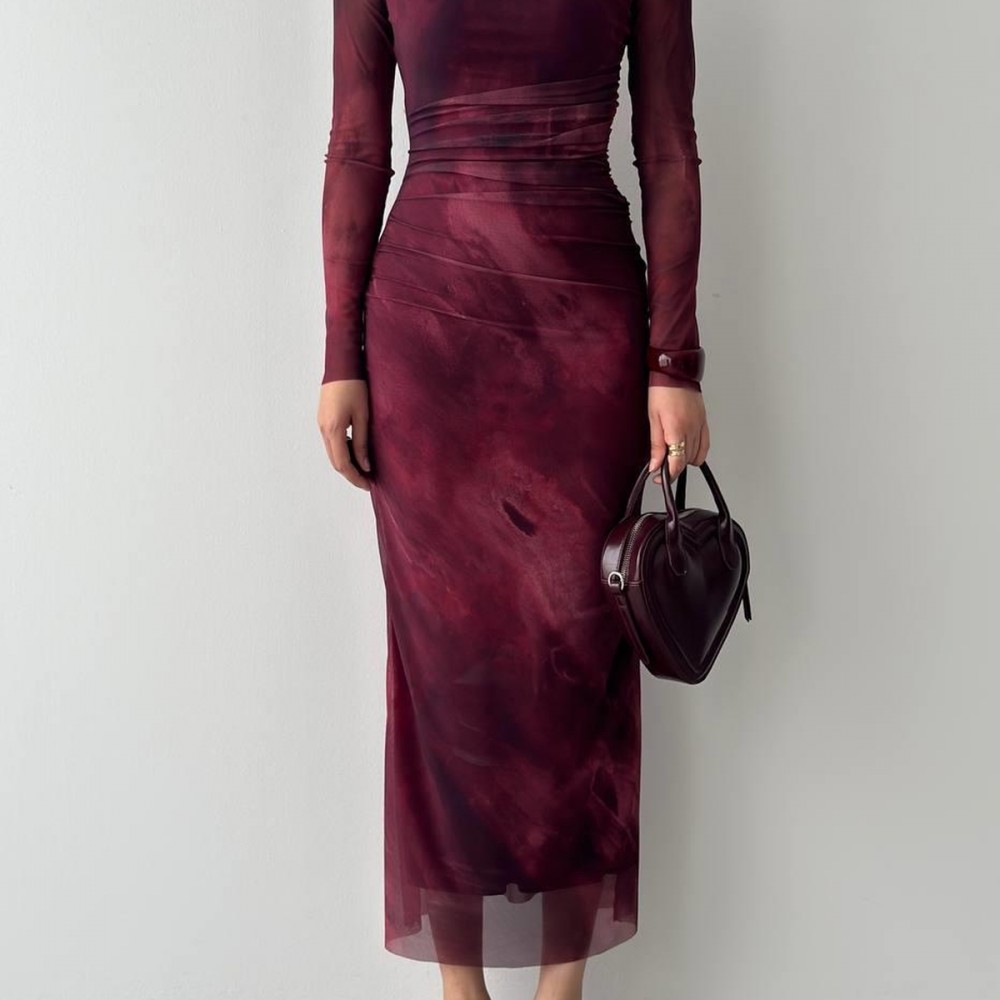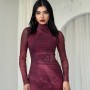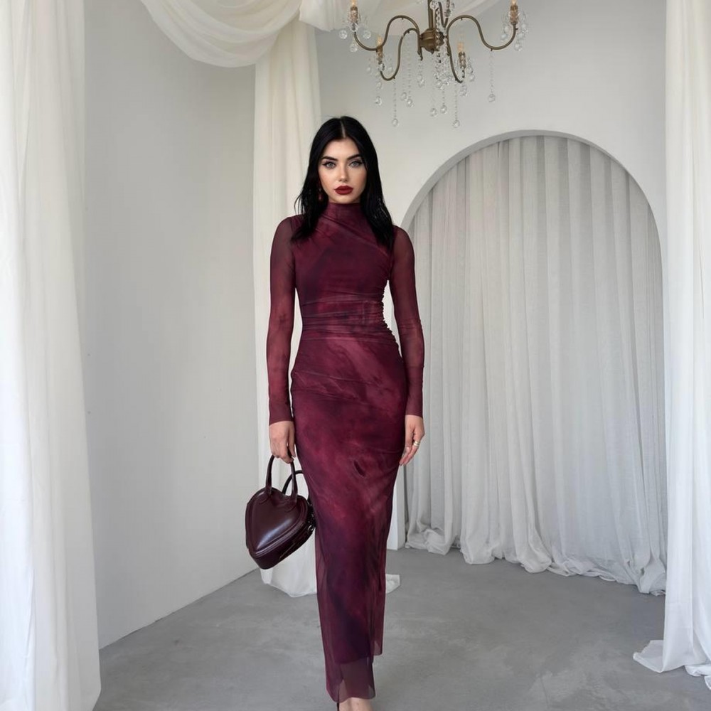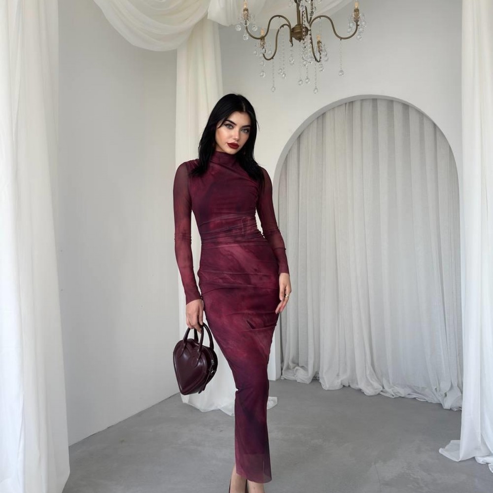 M00200-BORDO Bordo ELBİSE