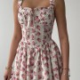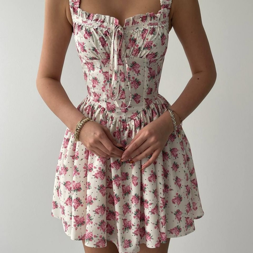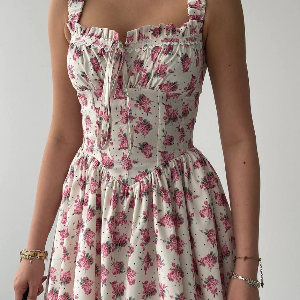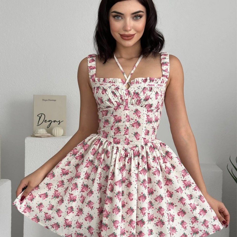 M00353-ÇİÇEK DESEN ÇİÇEK DESEN ELBİSE