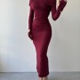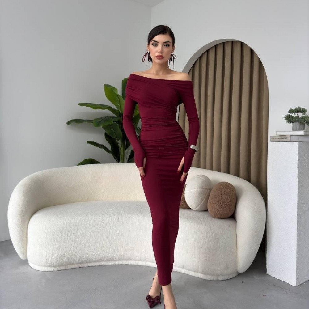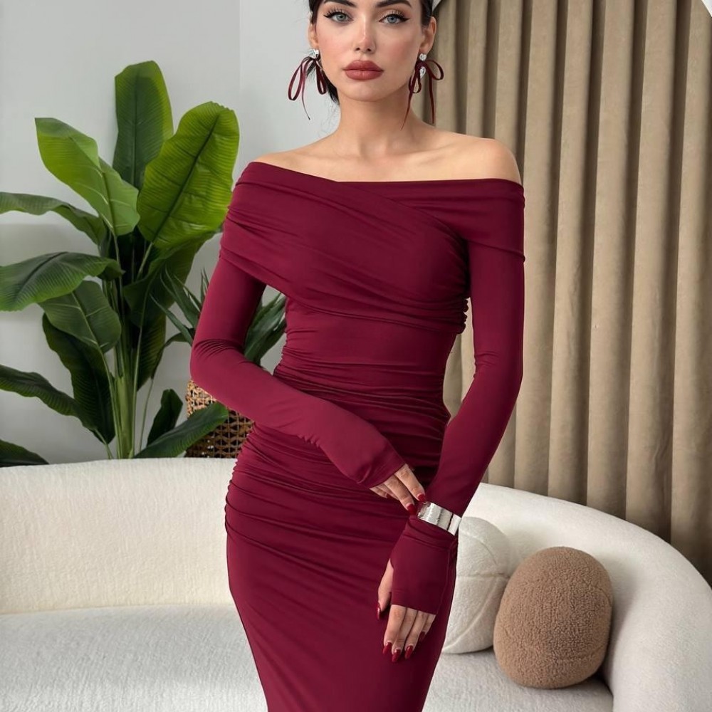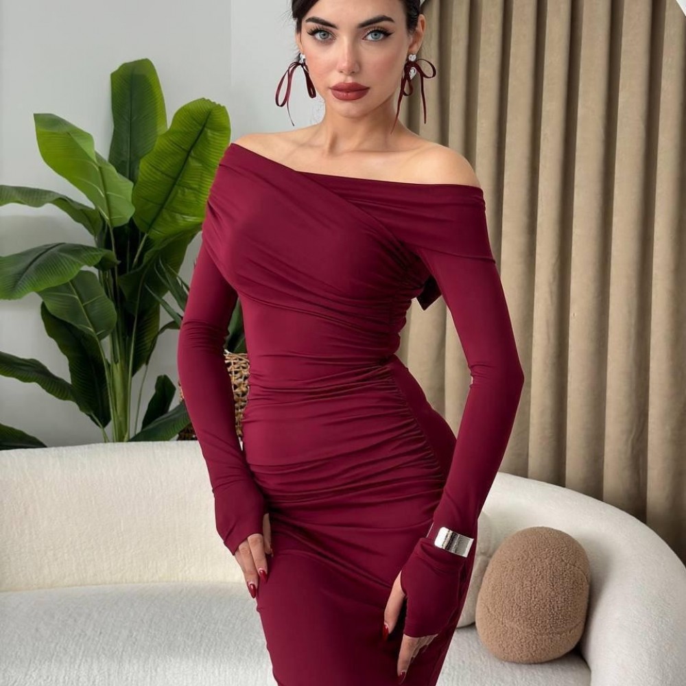 M00446-BORDO Bordo ELBİSE