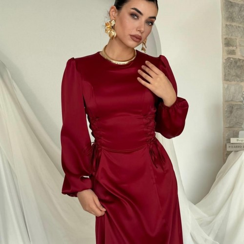 M00477-BORDO Bordo ELBİSE