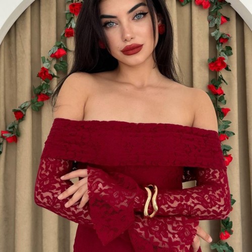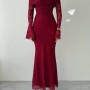 M00523-BORDO Bordo ELBİSE