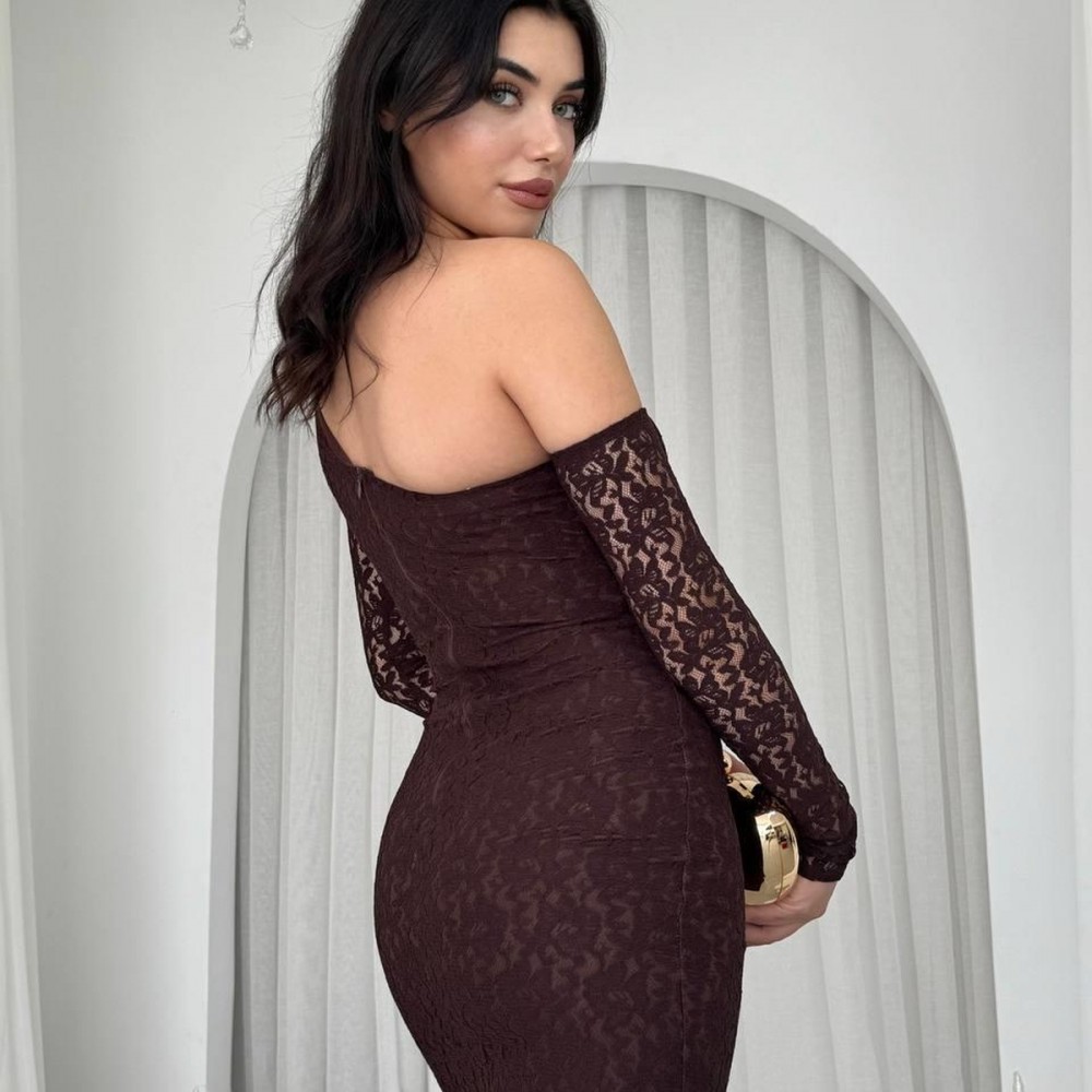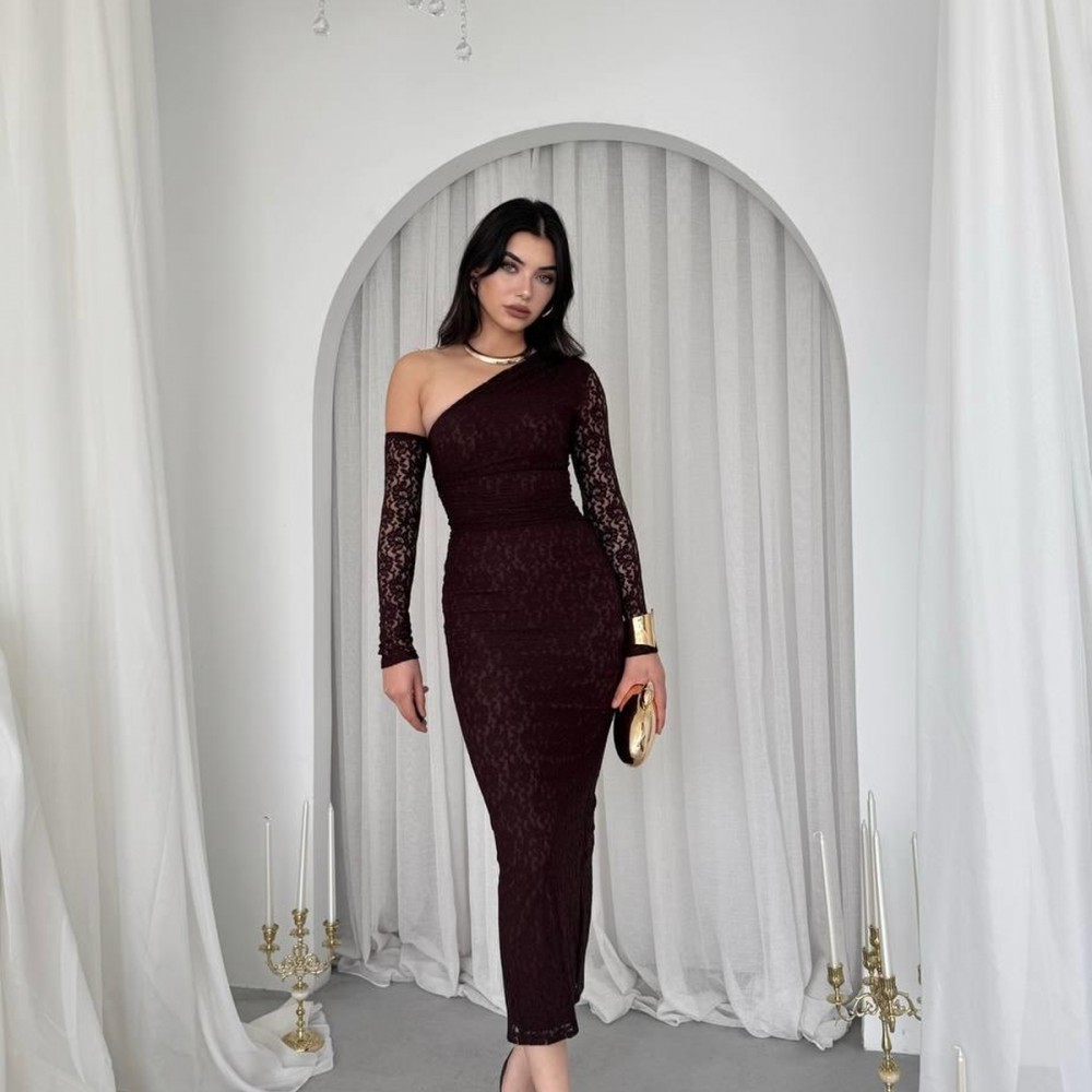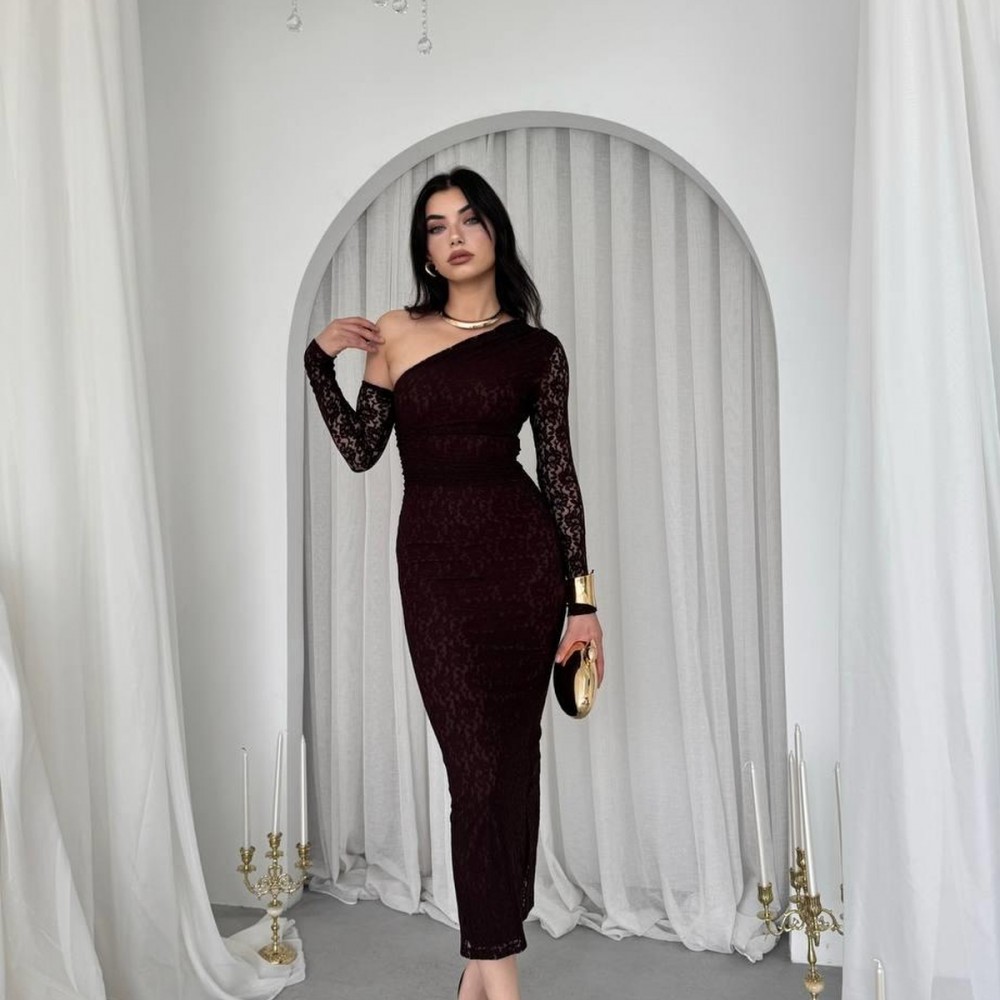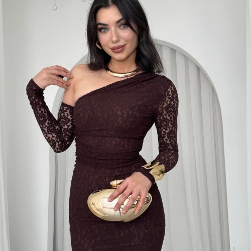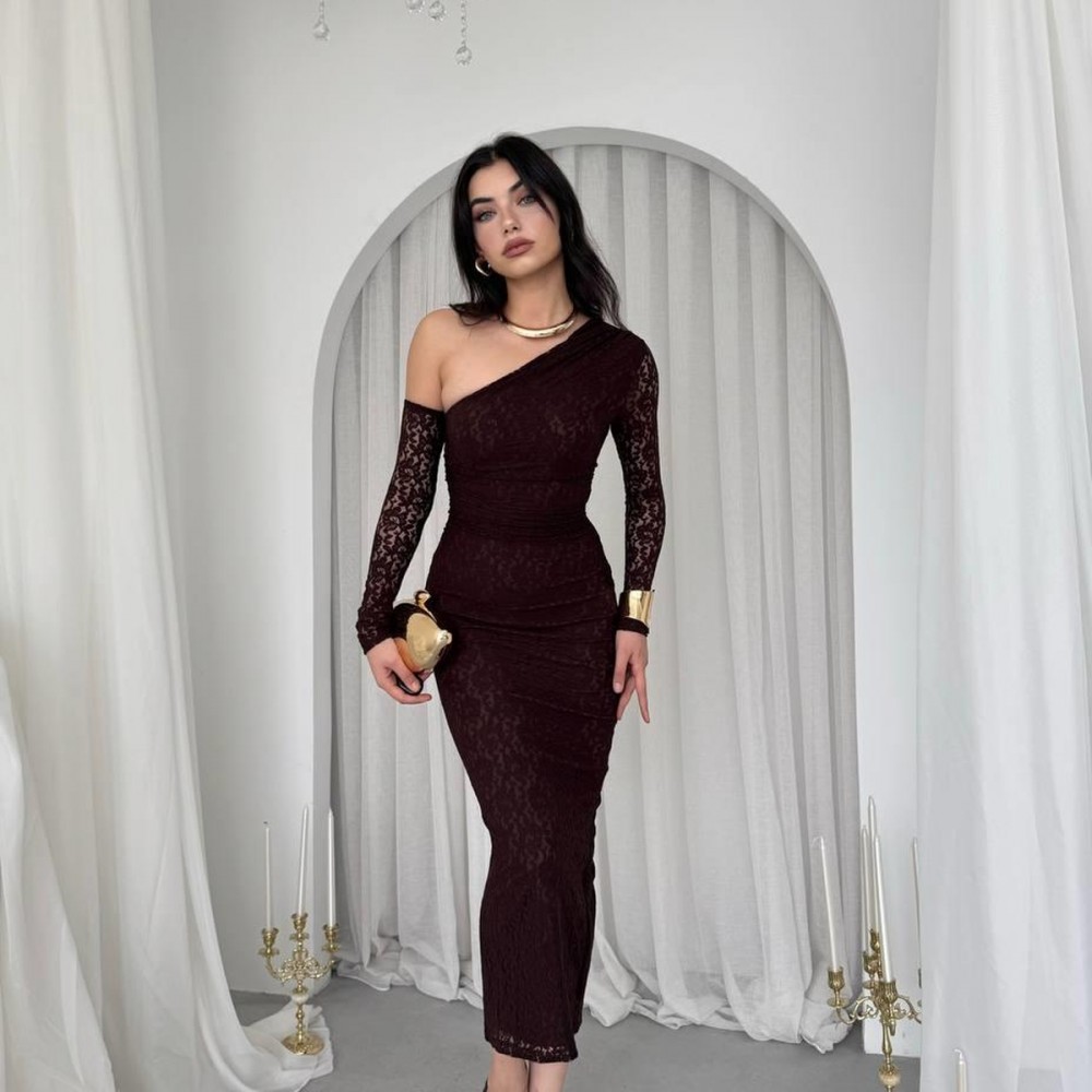 M00569-KAHVE KAHVE ELBİSE