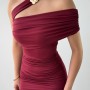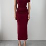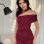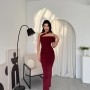 M00595-BORDO Bordo ELBİSE