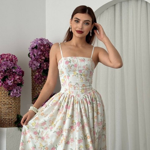 M00673-BEYAZ Beyaz ELBİSE
