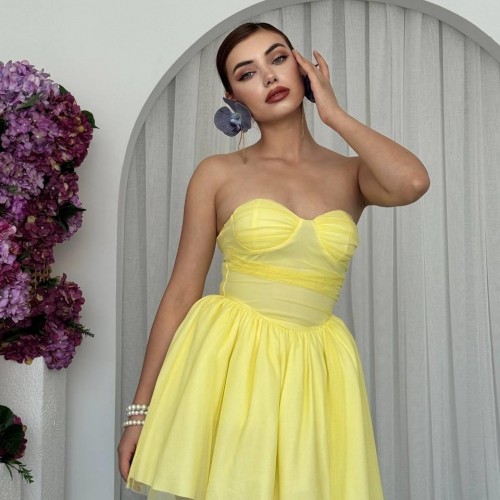M00684-SARI Sarı ELBİSE