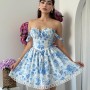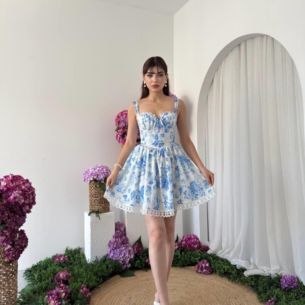 M00687-MAVİ BEYAZ MAVİ BEYAZ ELBİSE