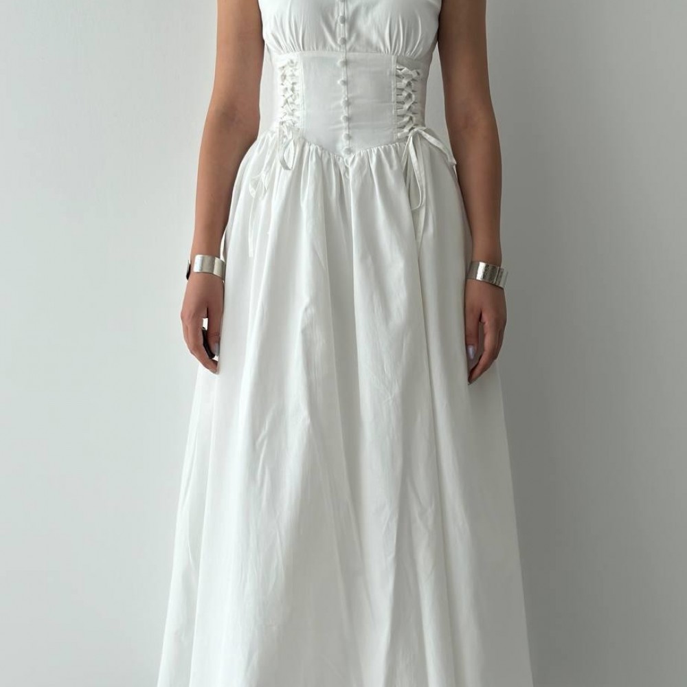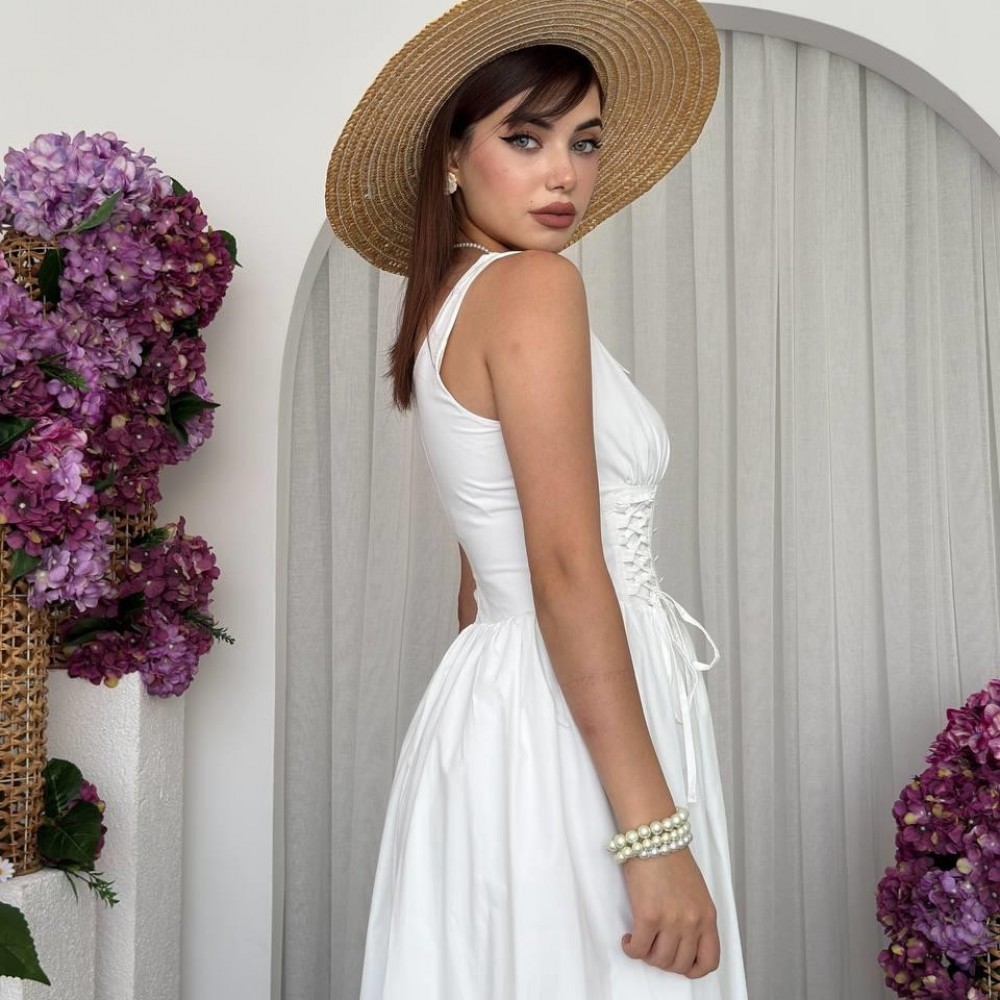 M00702-BEYAZ Beyaz ELBİSE