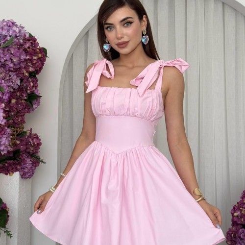 M00714-PEMBE Pembe ELBİSE
