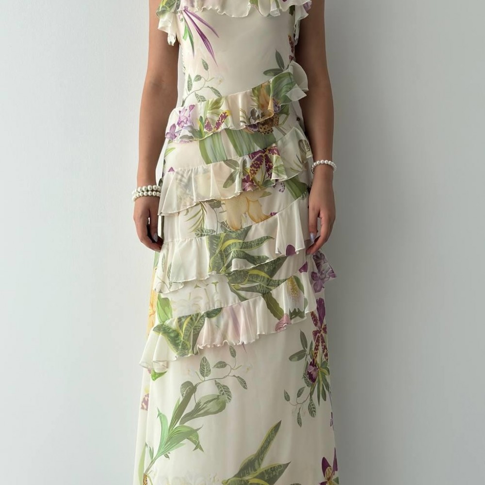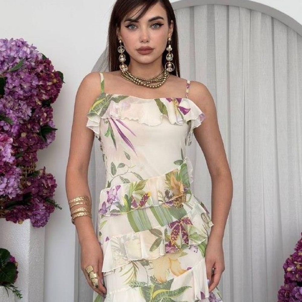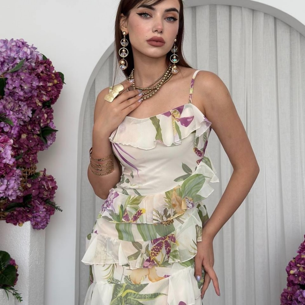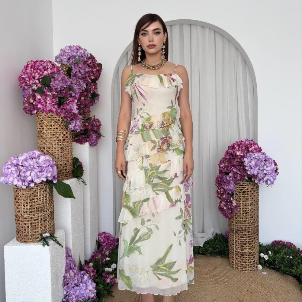 M00717-ÇİÇEK DESEN ÇİÇEK DESEN ELBİSE