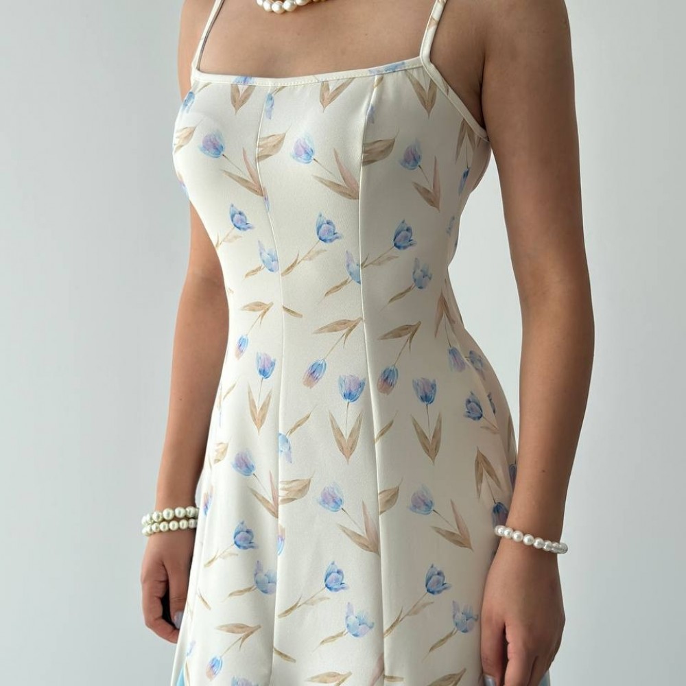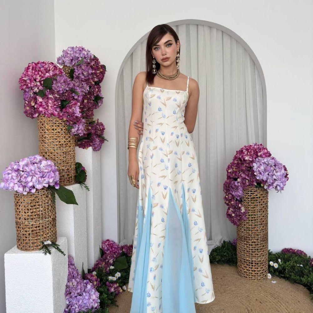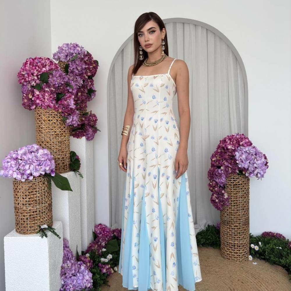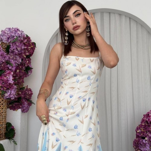 M00718-ÇİÇEK DESEN ÇİÇEK DESEN ELBİSE