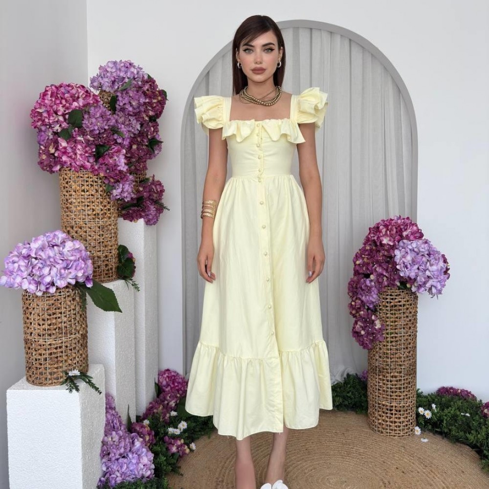 M00719-SARI Sarı ELBİSE