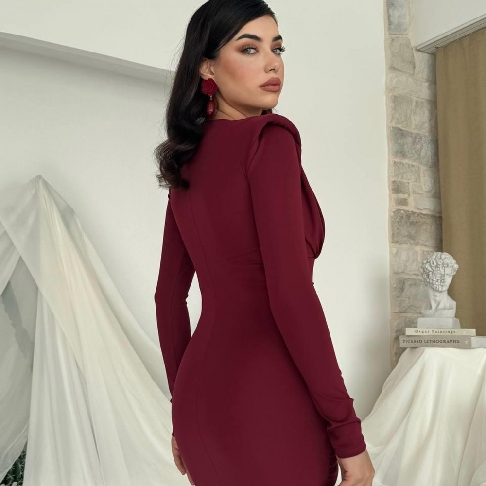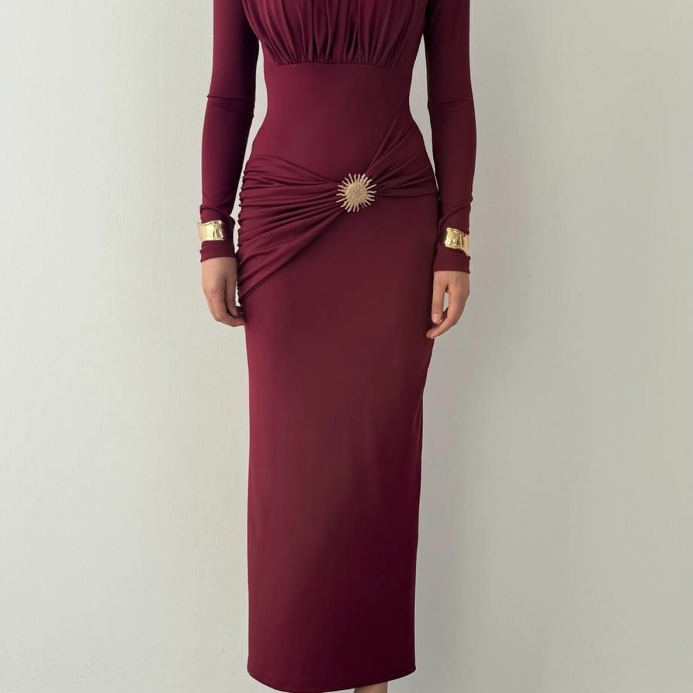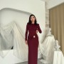 M00808-BORDO Bordo ELBİSE