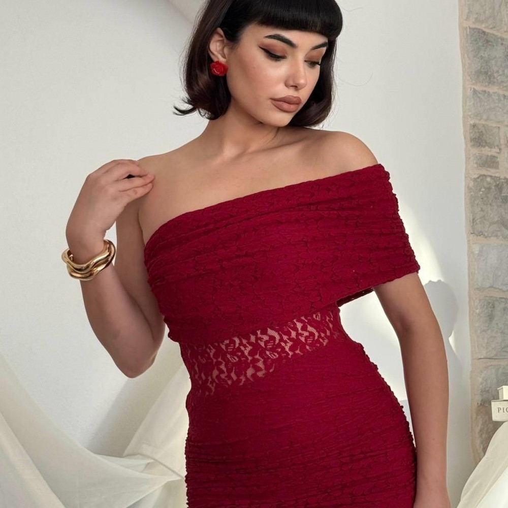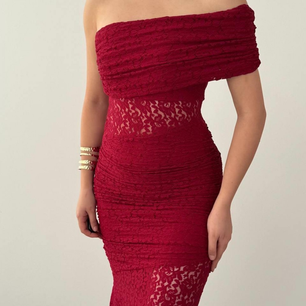 M00826-BORDO Bordo ELBİSE