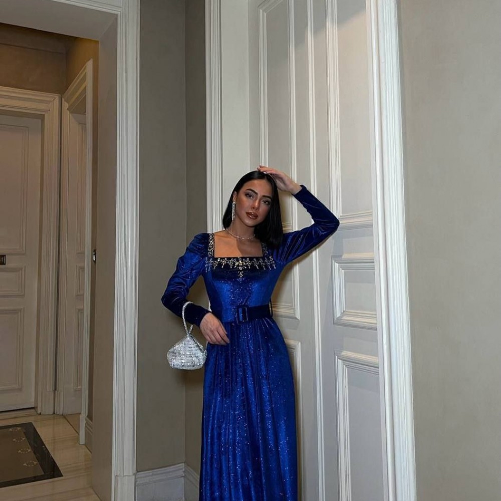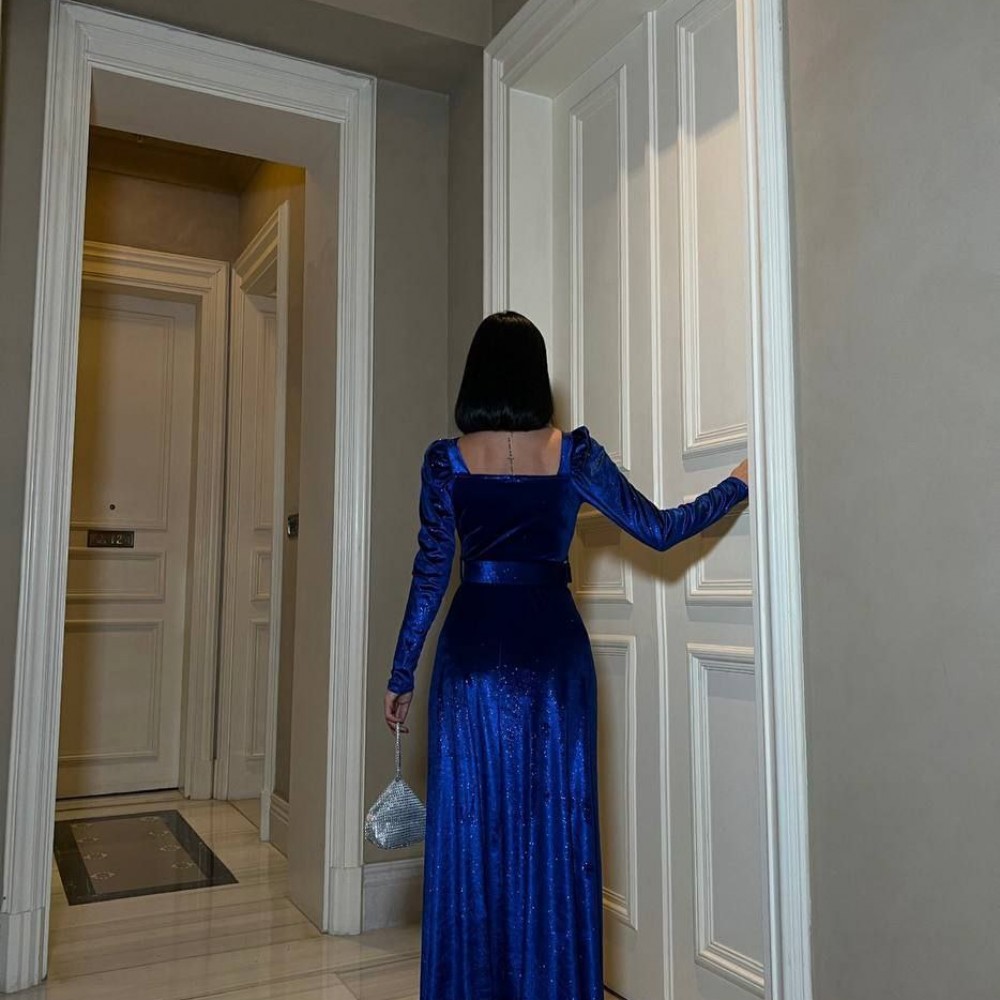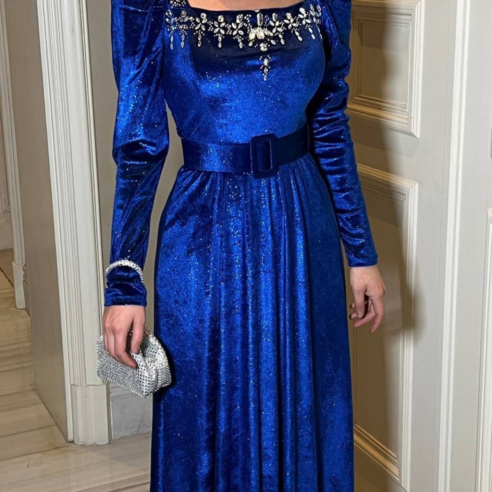 SİMLİ KADİFE KUMAŞ ELBİSE
