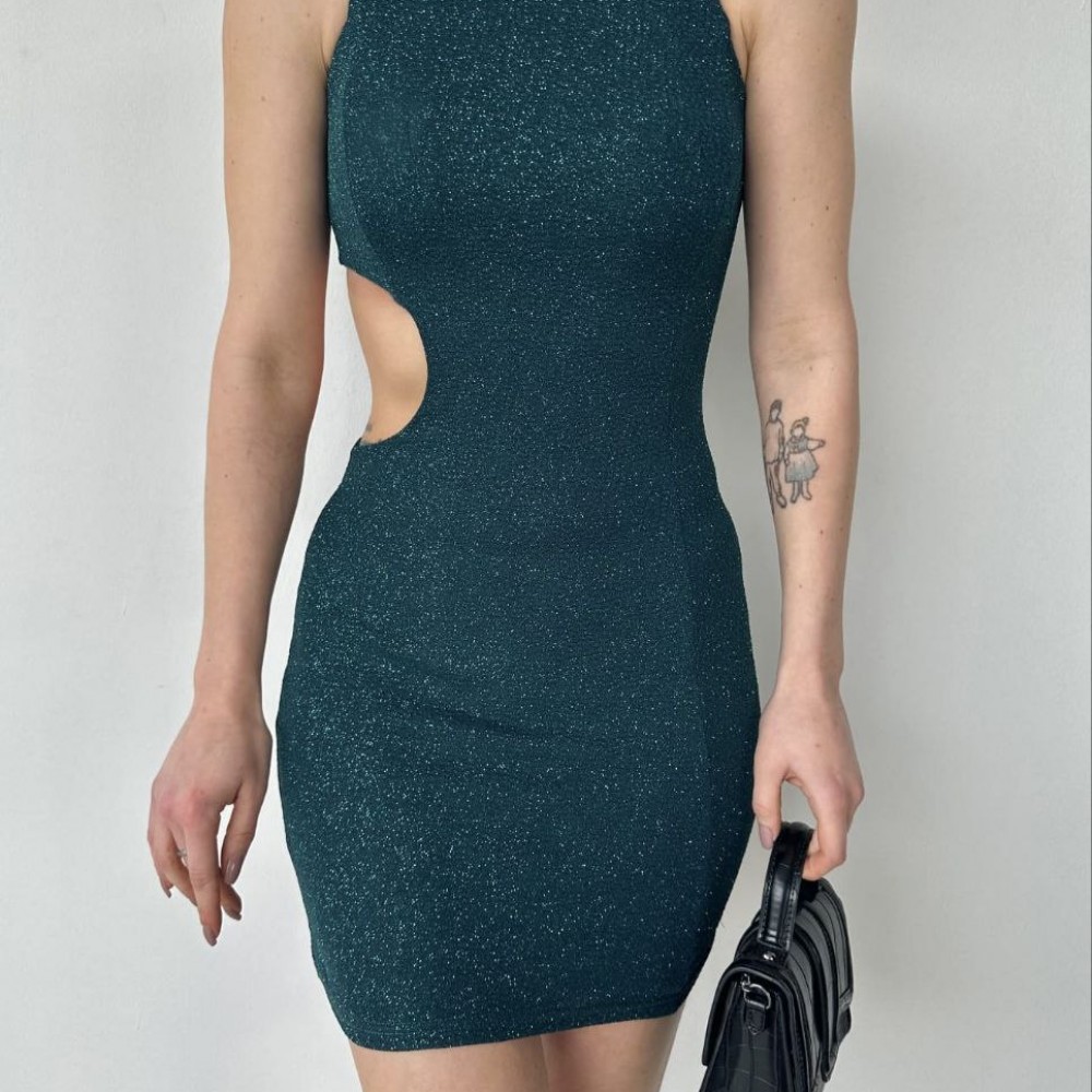 116258 TOPTAN ZÜMRÜT YEŞİL ELBİSE