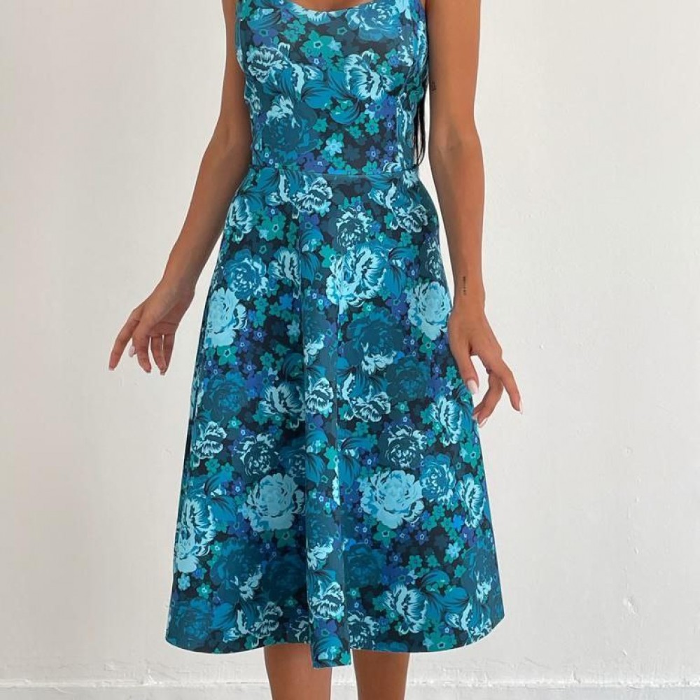 175798 TOPTAN ÇİÇEK DESENLİ ELBİSE