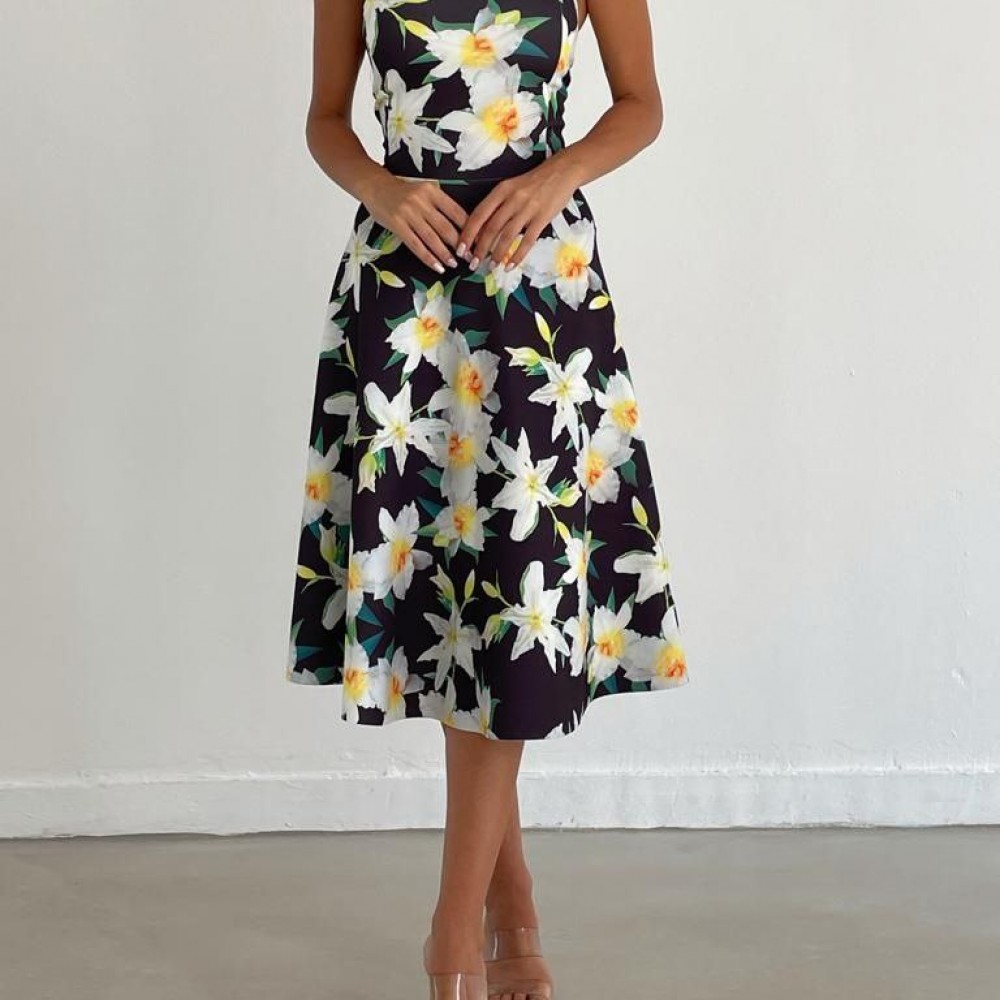 175801 TOPTAN ÇİÇEK DESENLİ ELBİSE