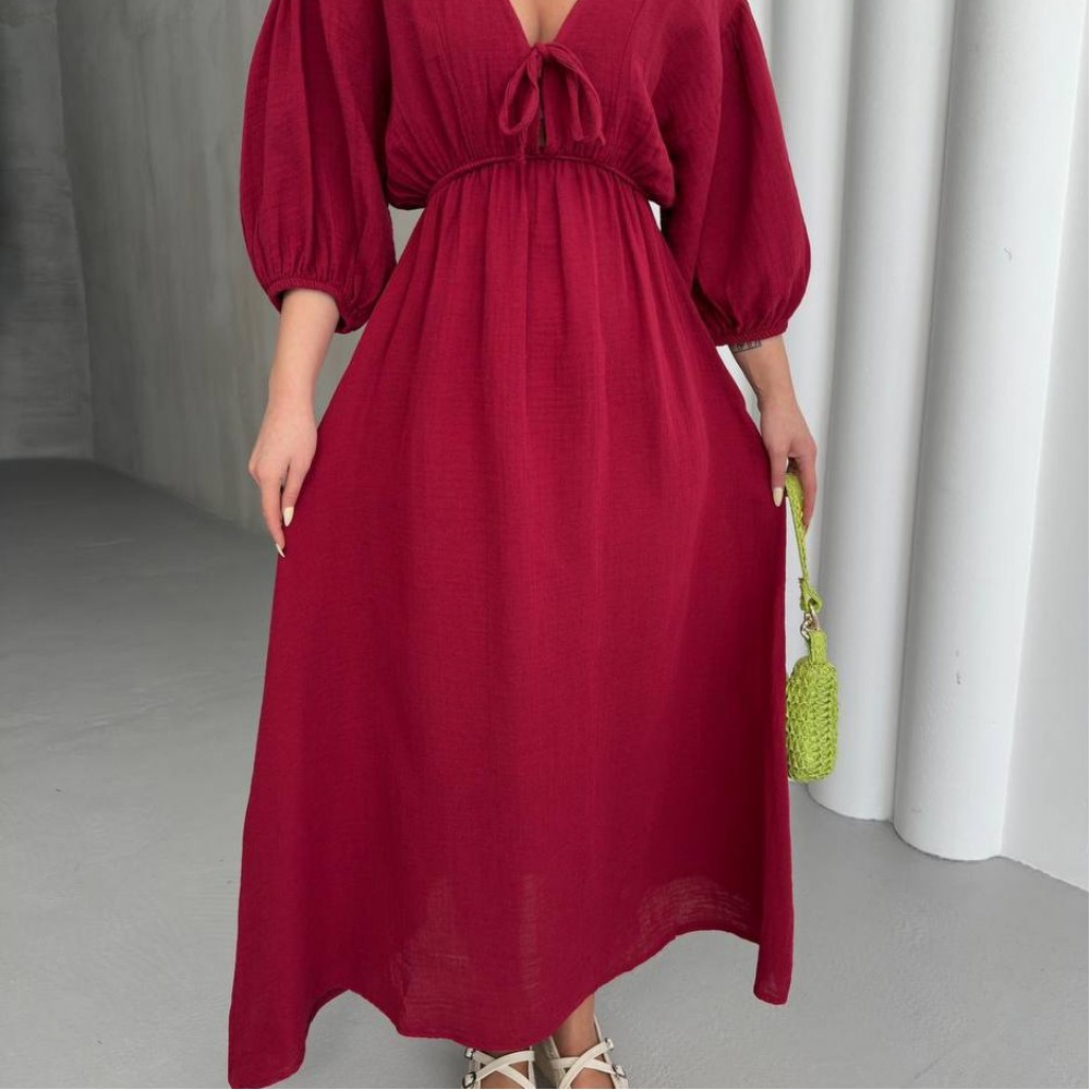 182707 TOPTAN BORDO ELBİSE