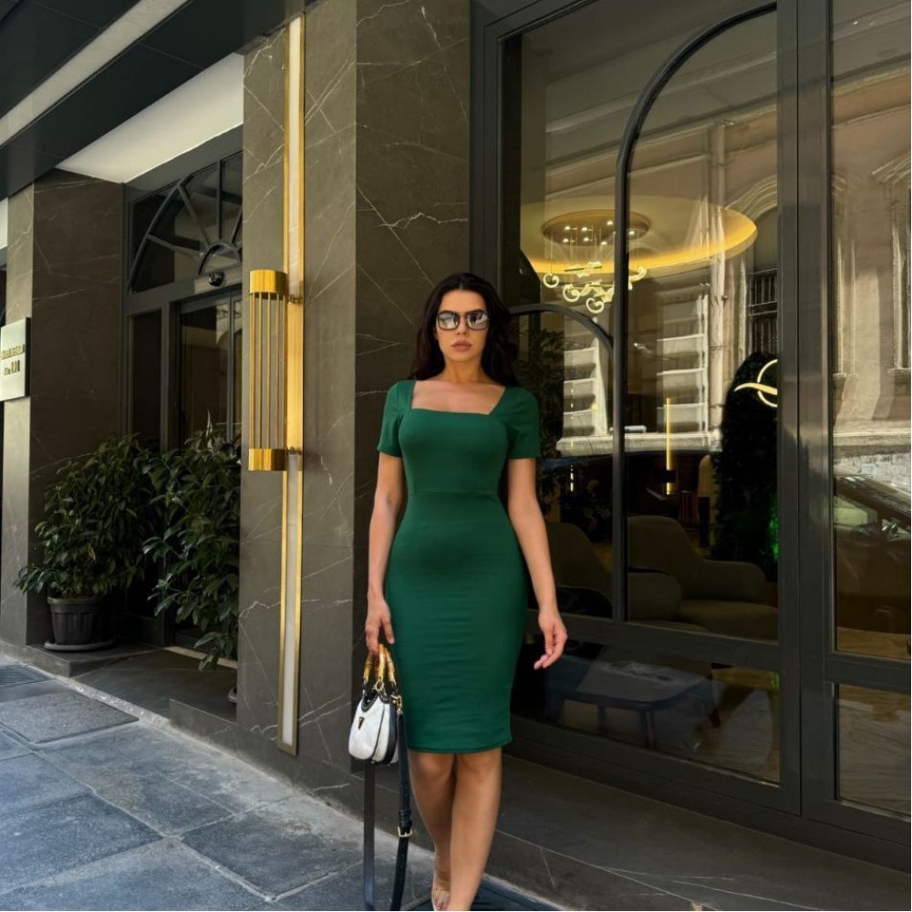 223498 TOPTAN ZÜMRÜT YEŞİL ELBİSE