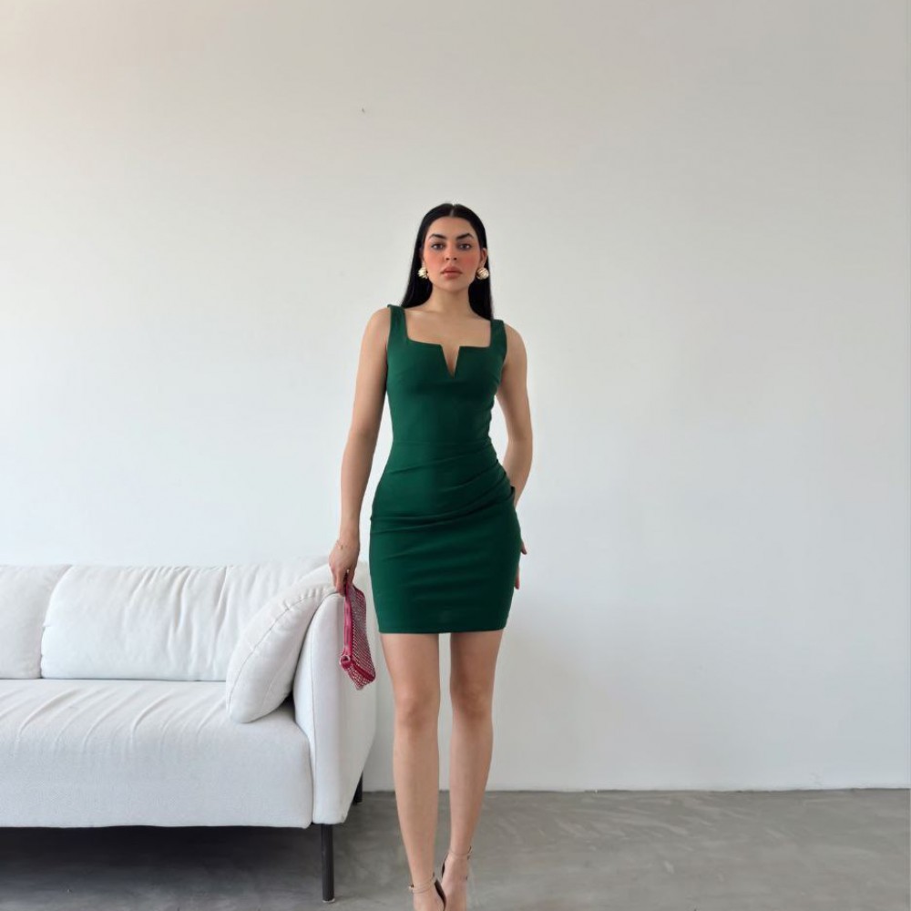 223680 TOPTAN ZÜMRÜT YEŞİL ELBİSE