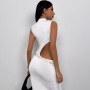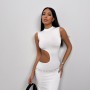 Asimetrik Bel Kemerli, Sıfır Yaka, Kalın Askılı, Maxi Boy, Elbise Mank