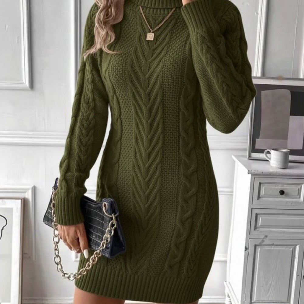 Kadın Balıkçı Yaka Mini Triko Elbise