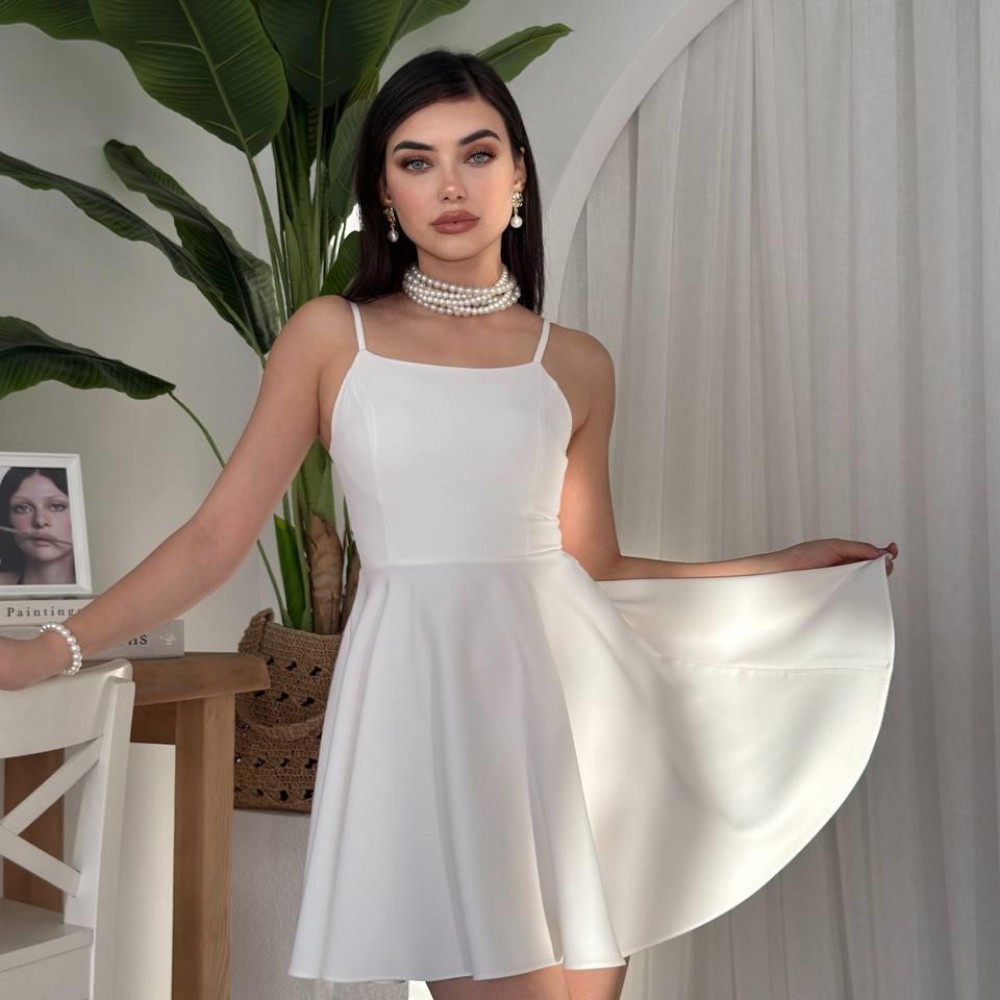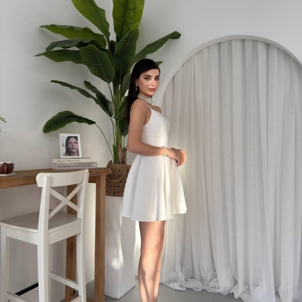 M00077-BEYAZ Beyaz ELBİSE