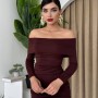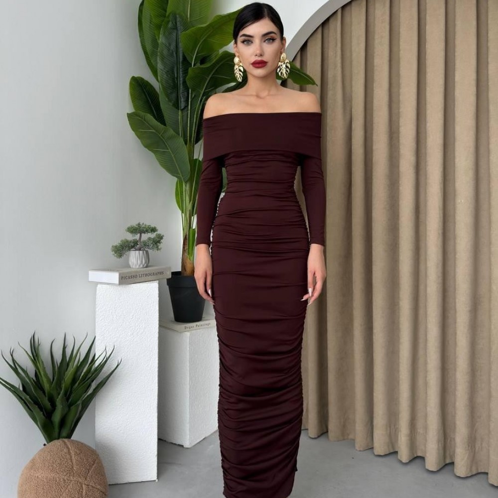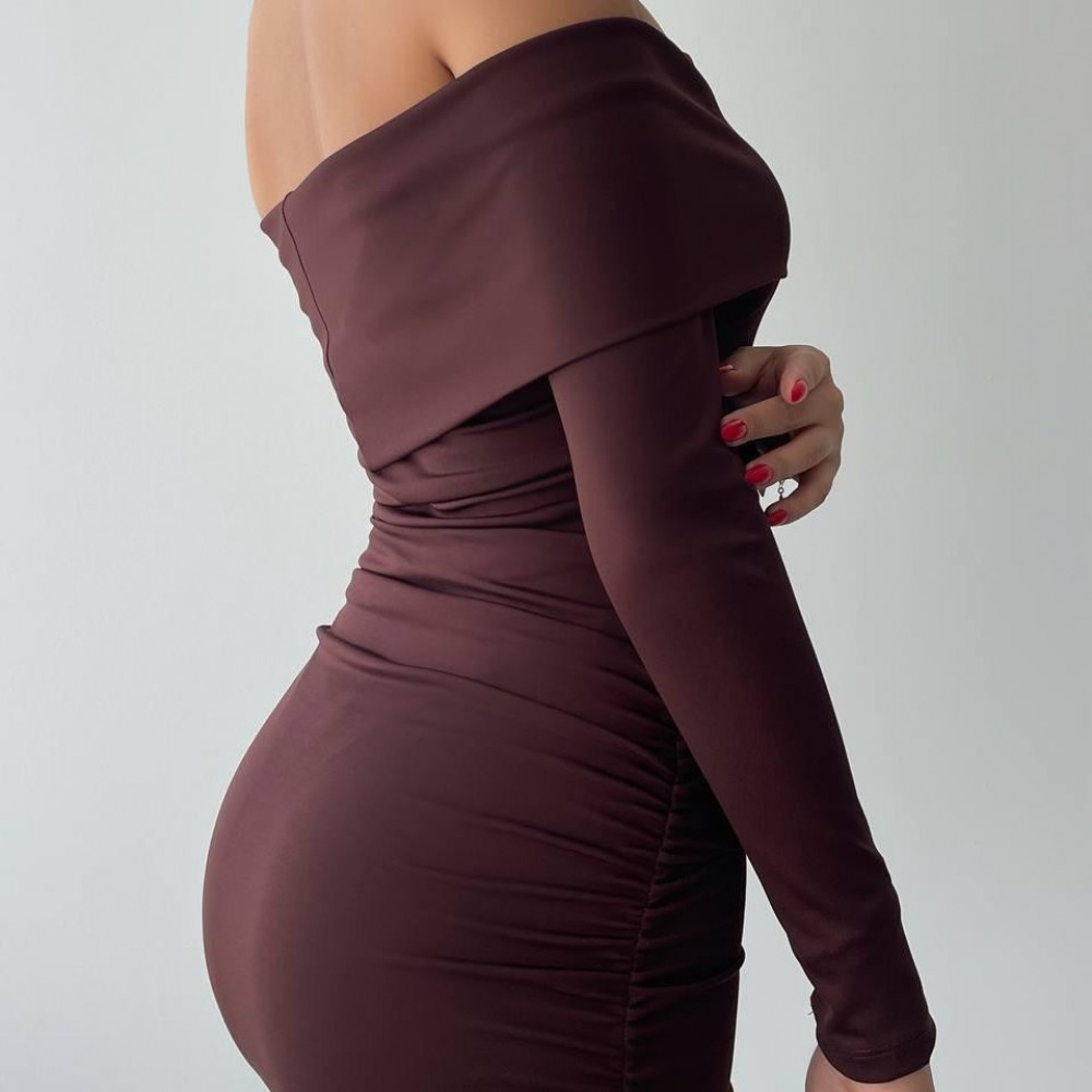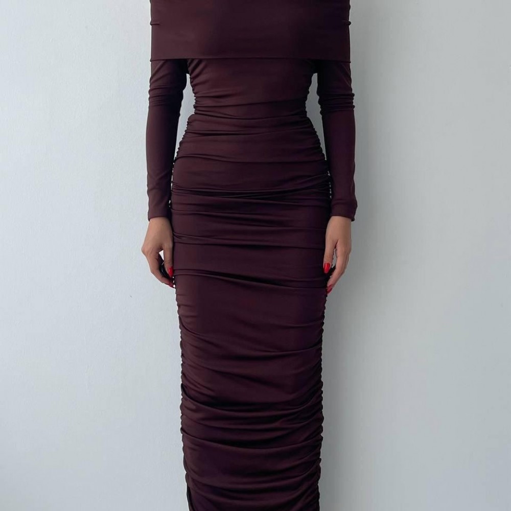 M00102-KAHVE KAHVE ELBİSE