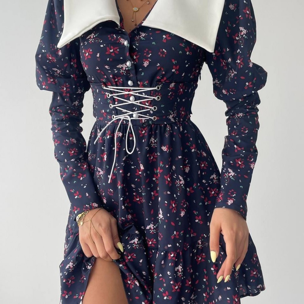 M00113-ÇİÇEK DESEN ÇİÇEK DESEN ELBİSE