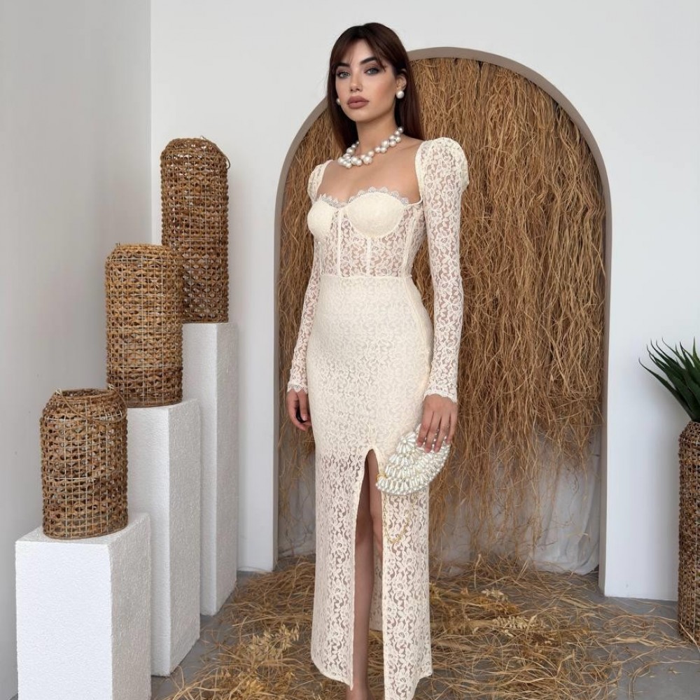 M00277-BEJ Bej ELBİSE
