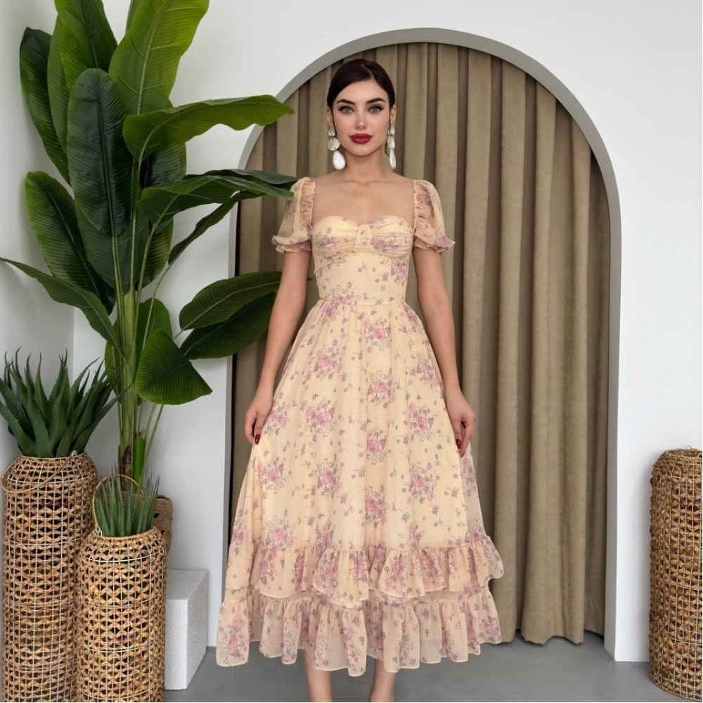 M00330-BEJ Bej ELBİSE