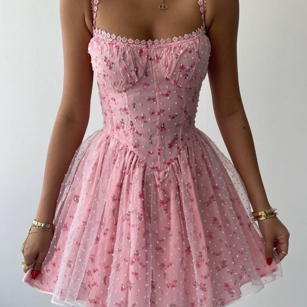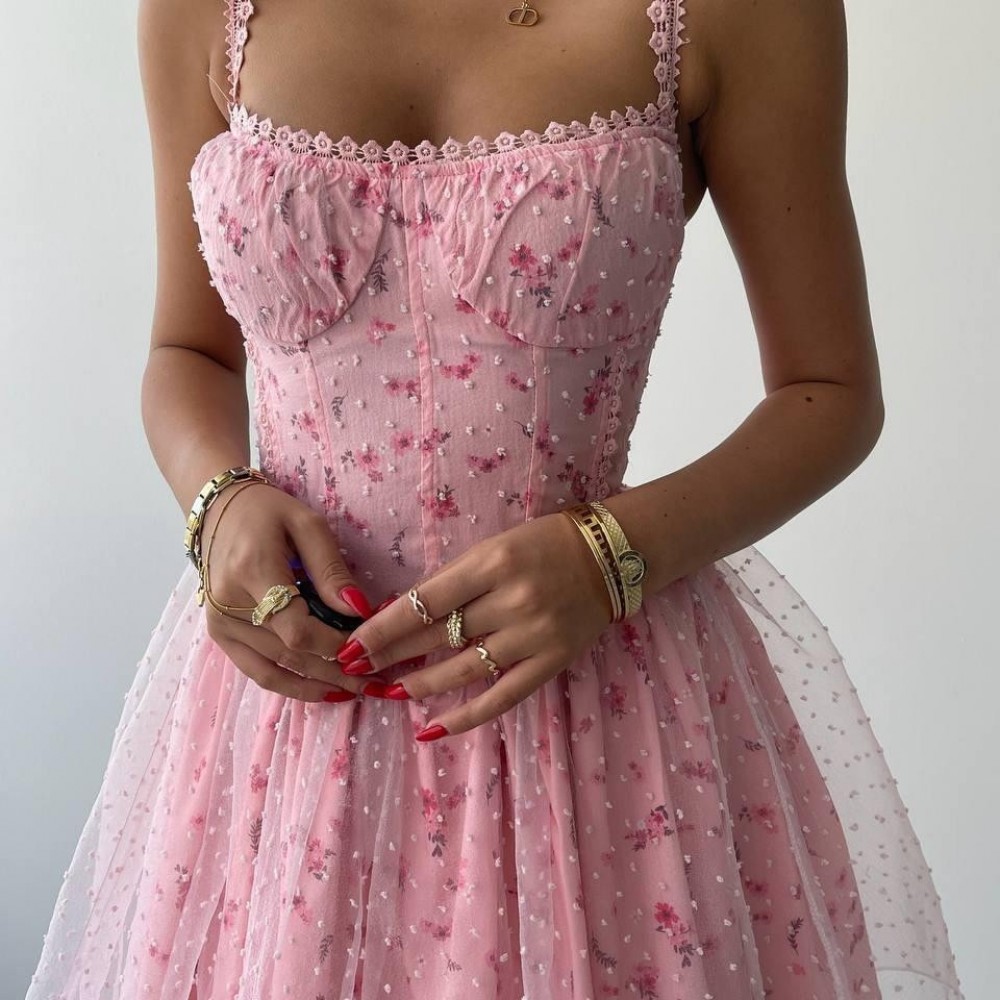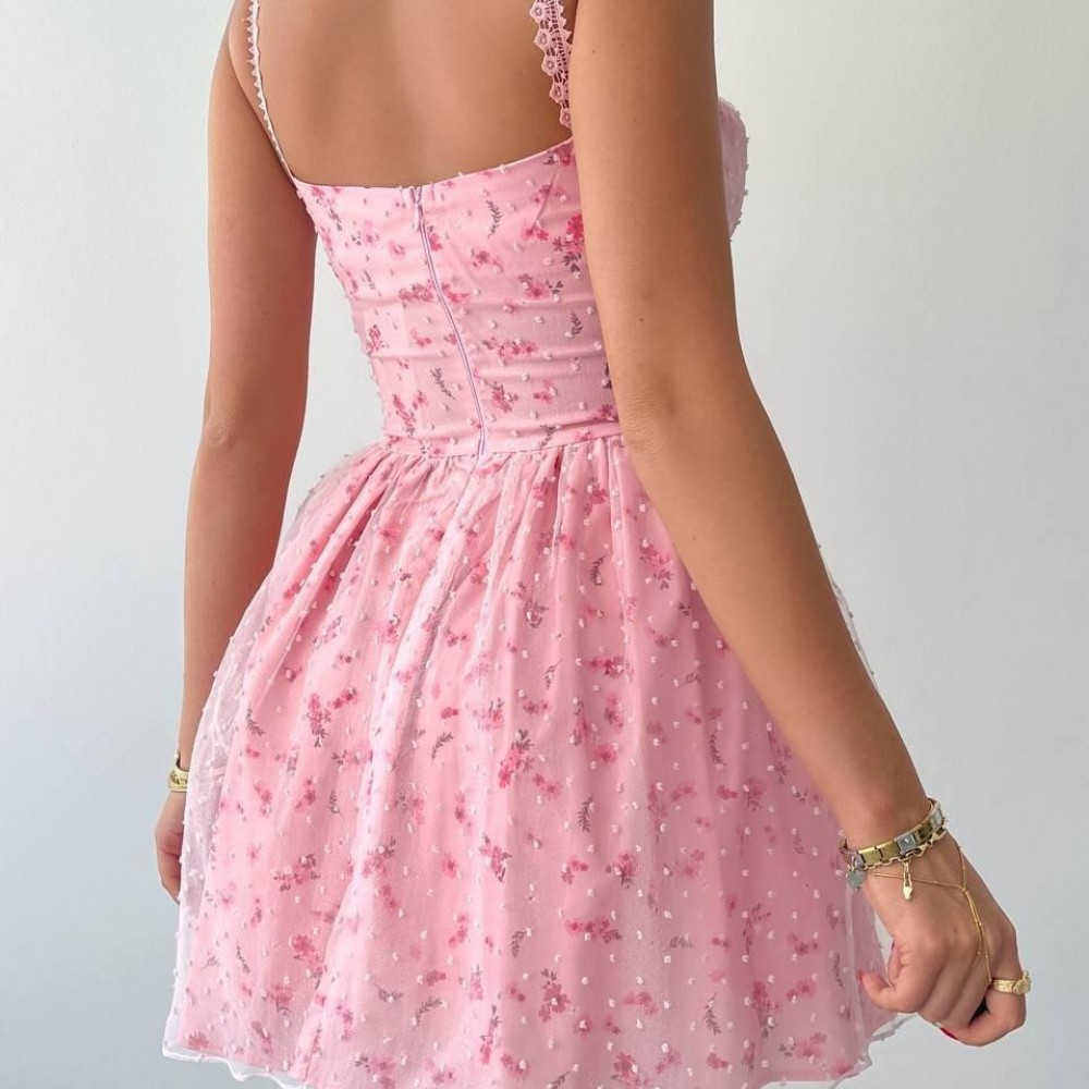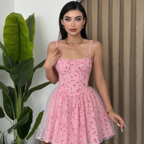 M00422-PEMBE Pembe ELBİSE