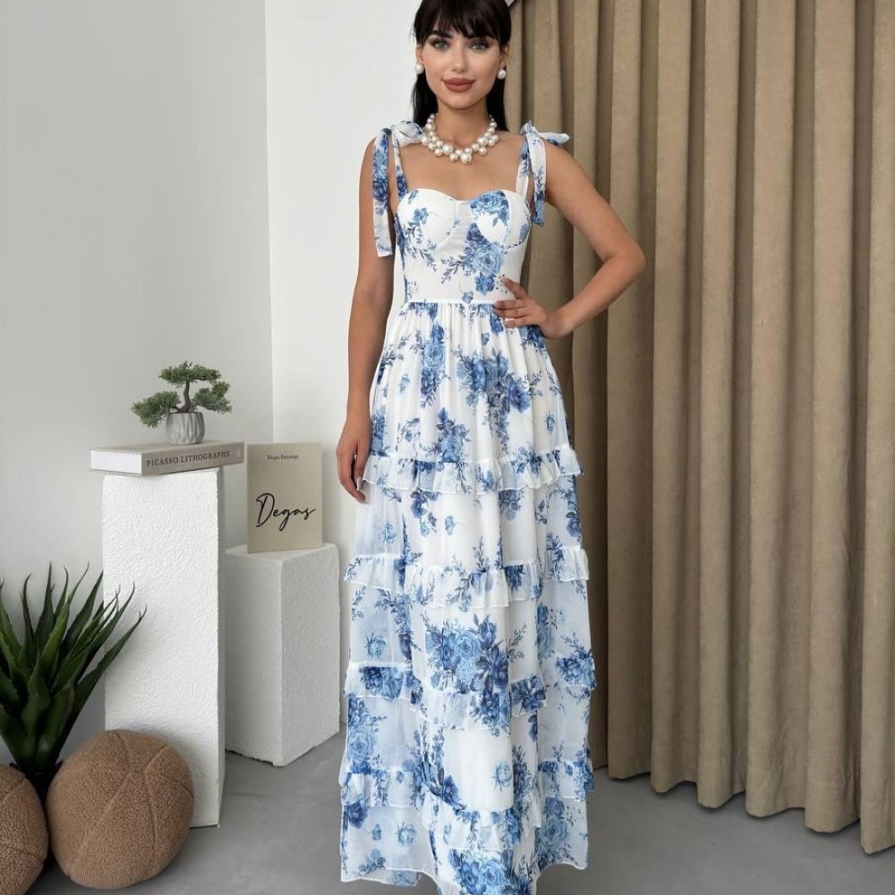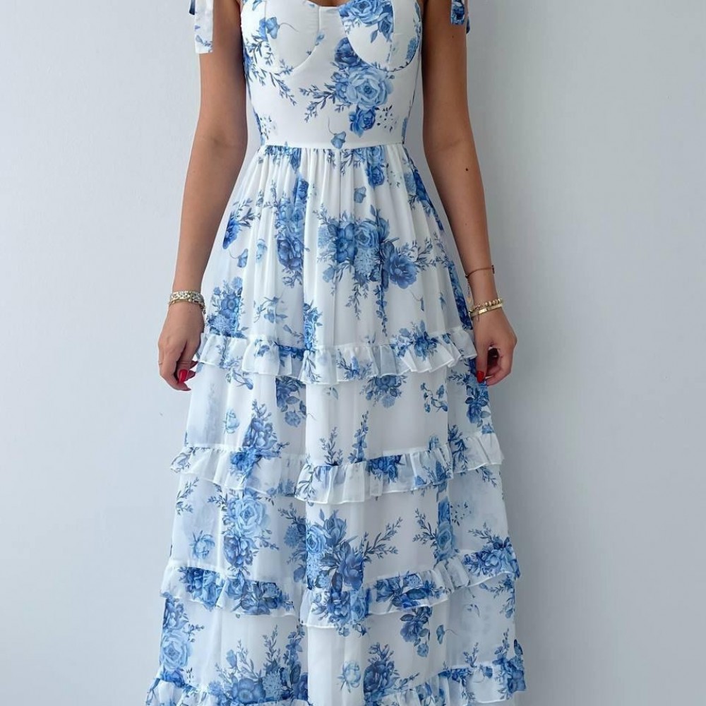 M00426-BEYAZ MAVİ BEYAZ MAVİ ELBİSE