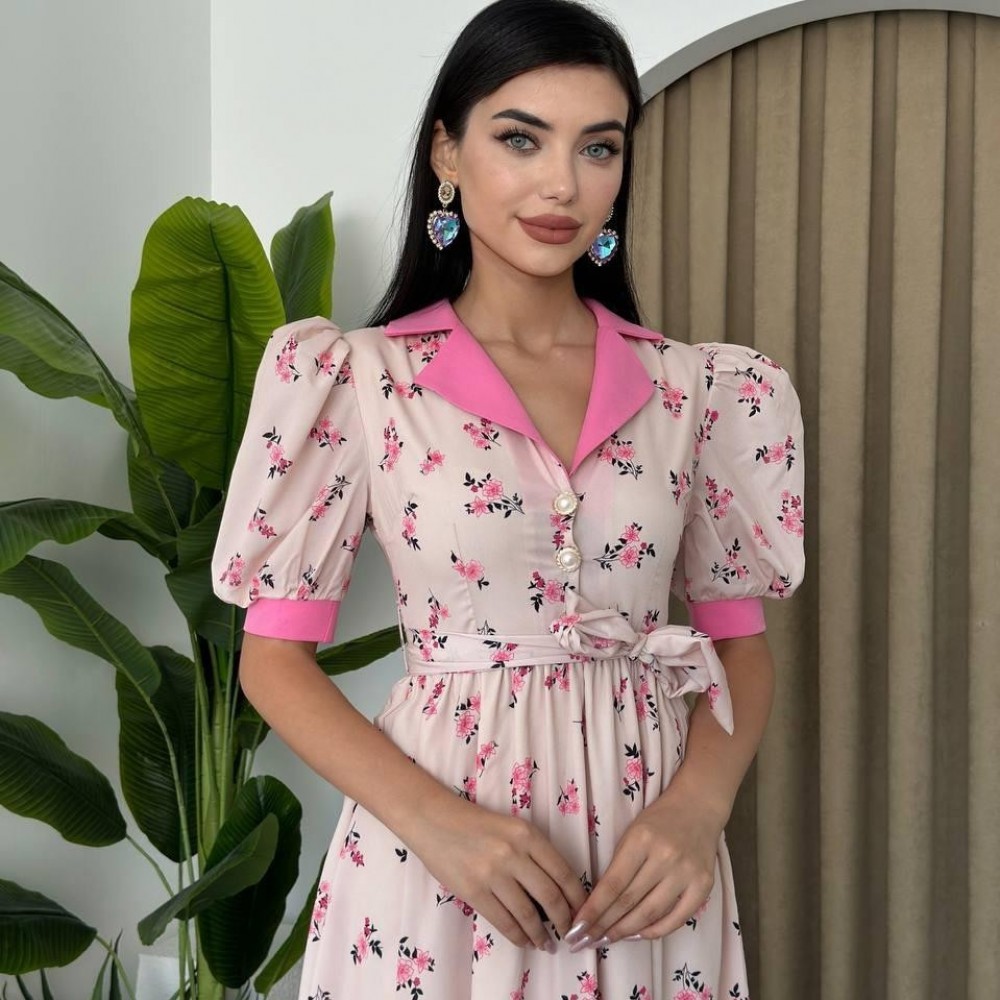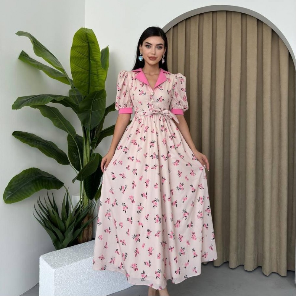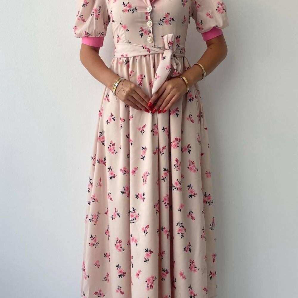 M00435-PEMBE Pembe ELBİSE