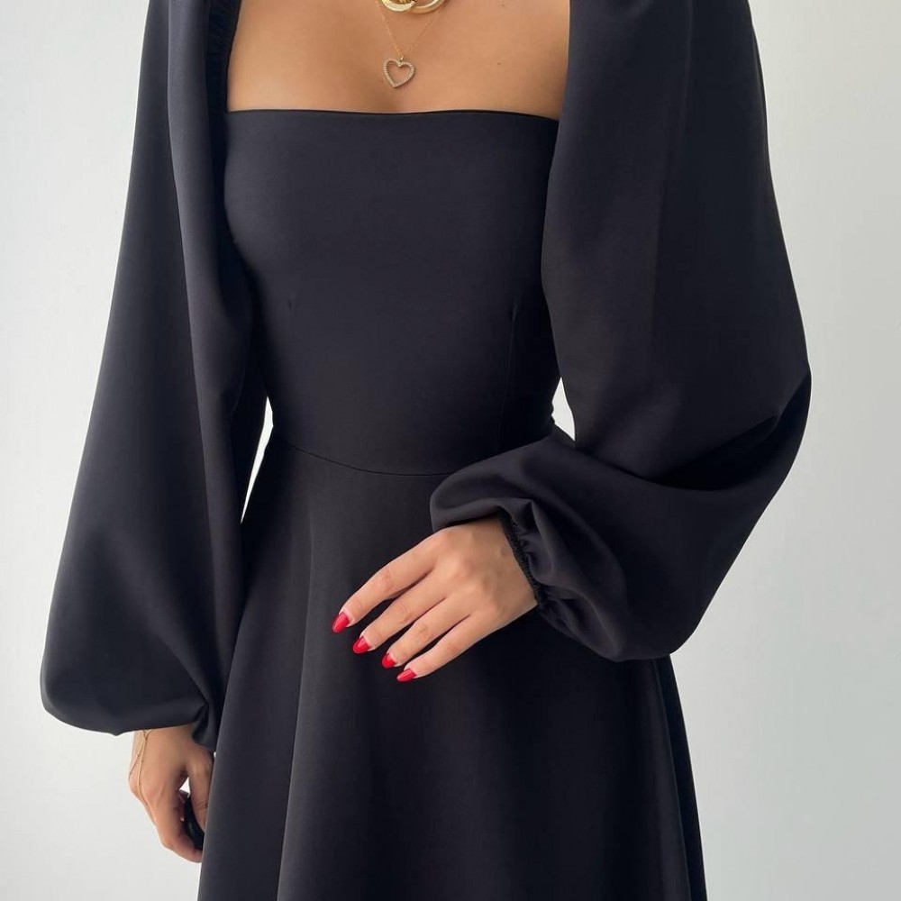 M00453-SIYAH Siyah ELBİSE