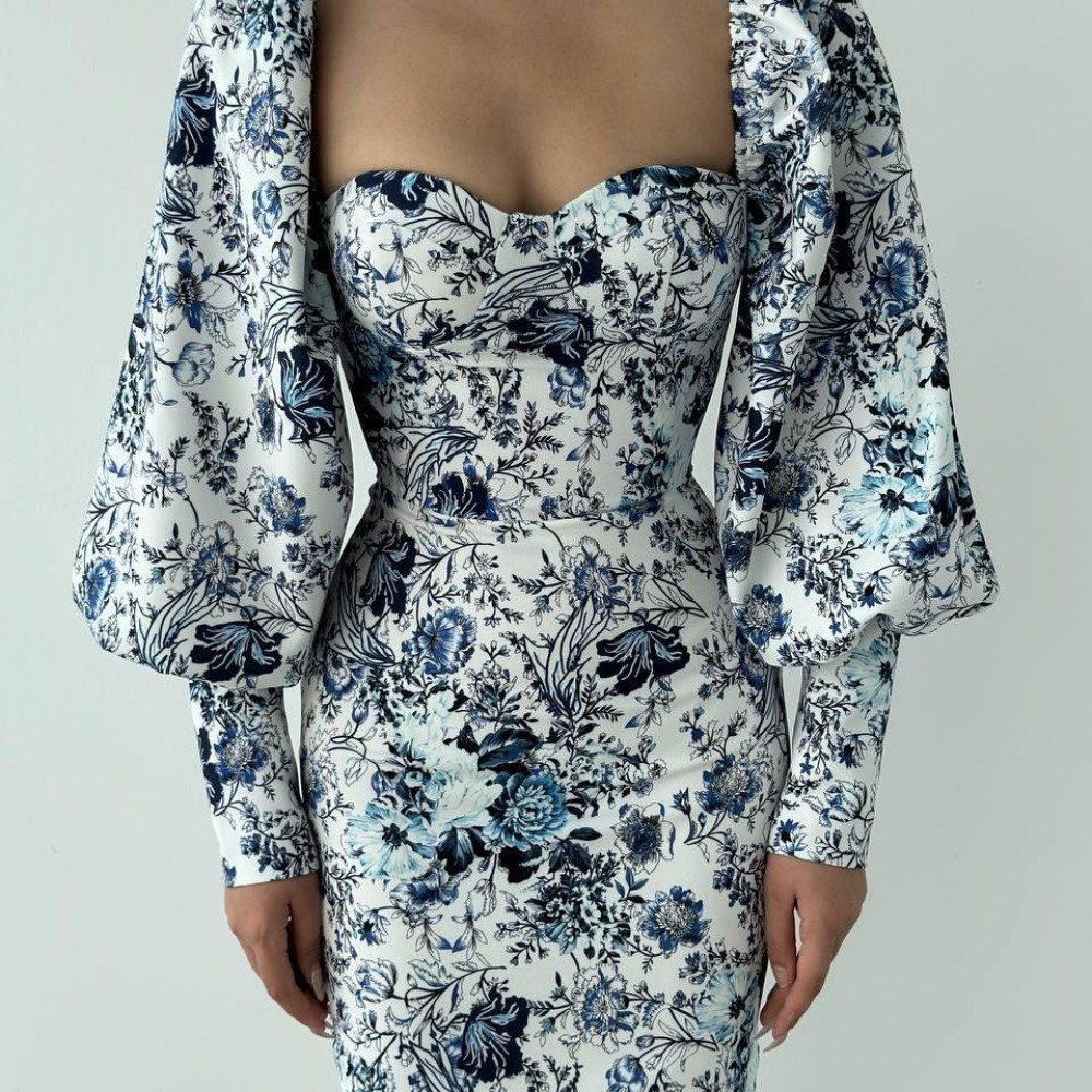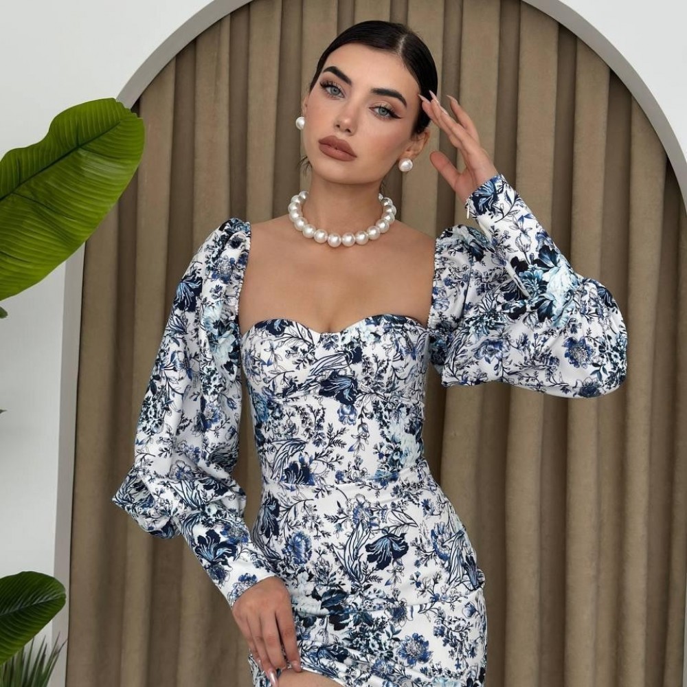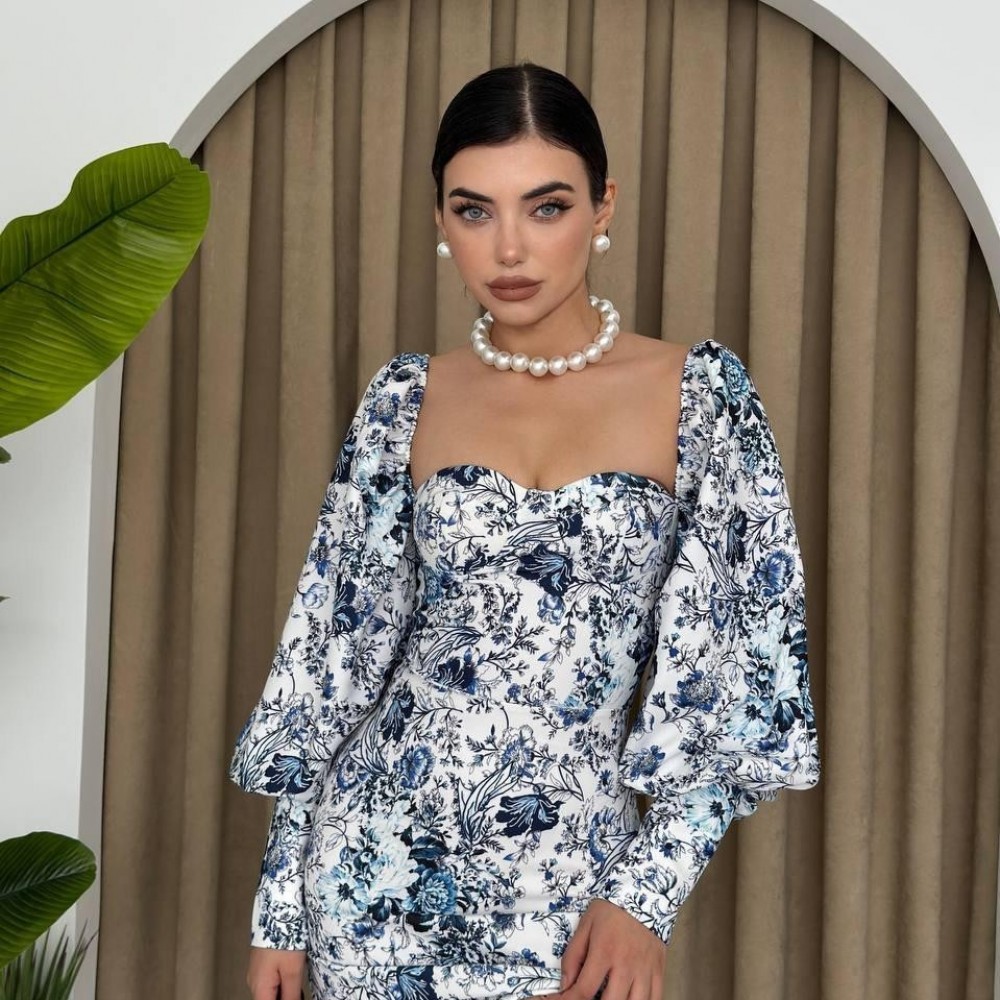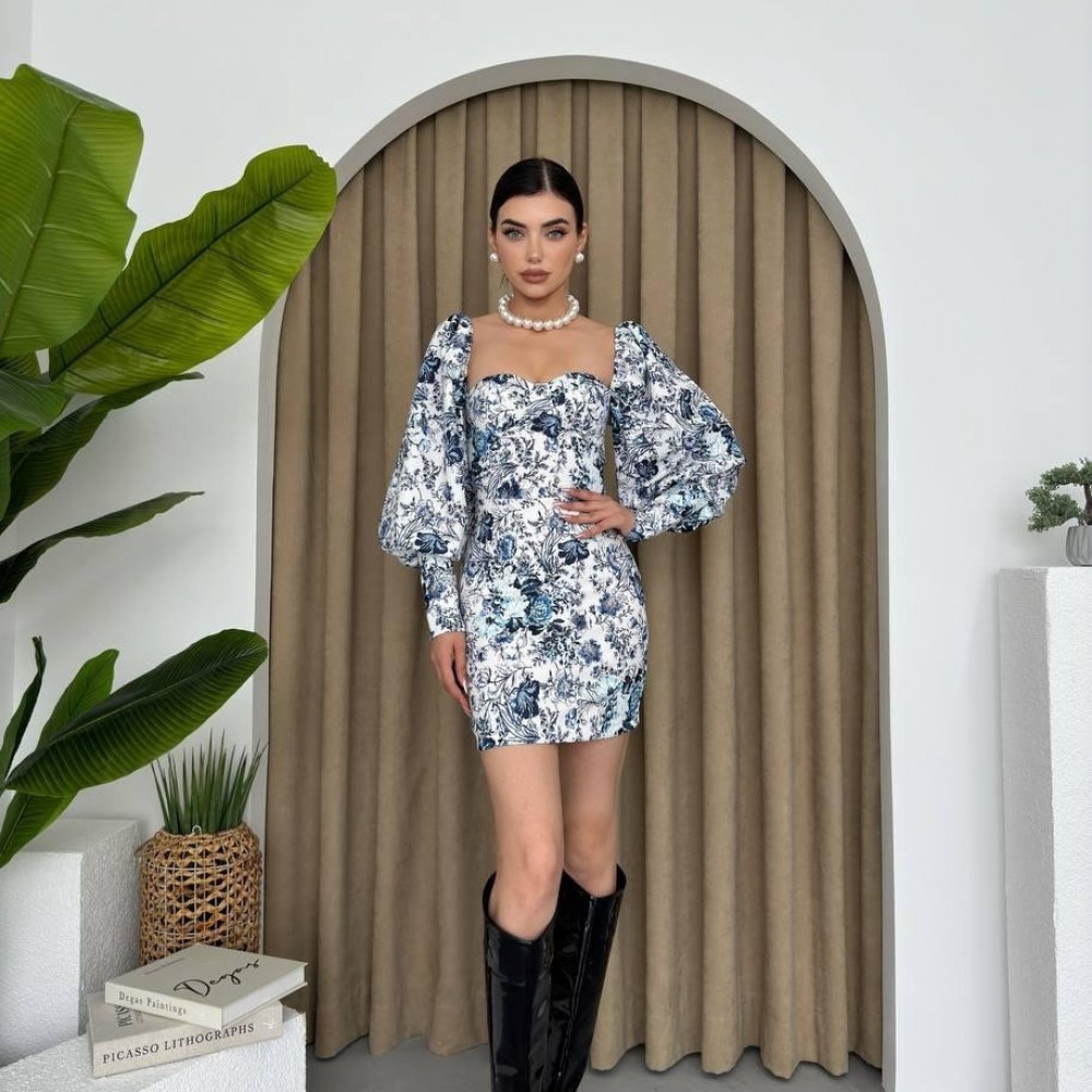 M00462-MAVİ BEYAZ MAVİ BEYAZ ELBİSE