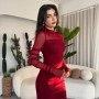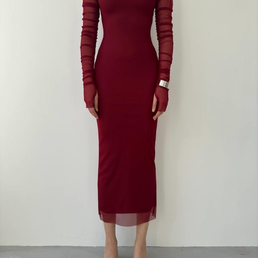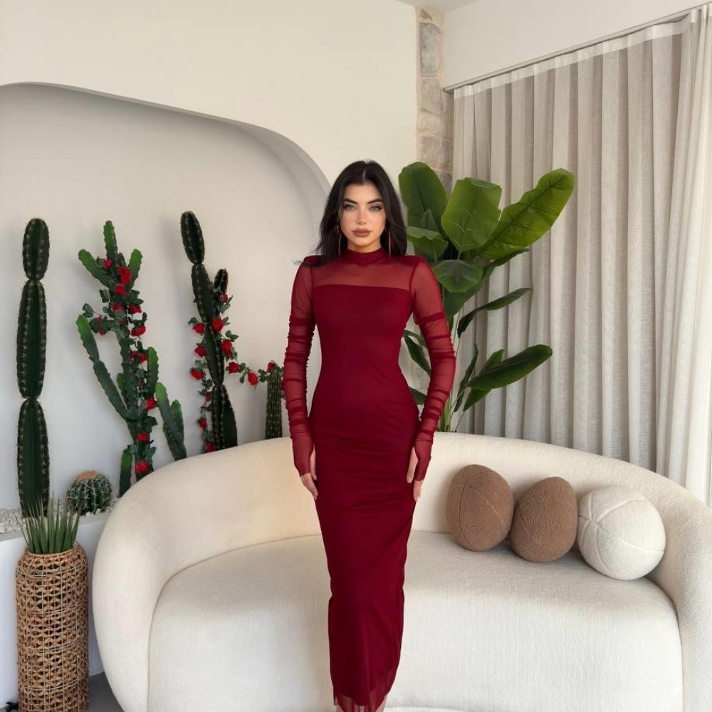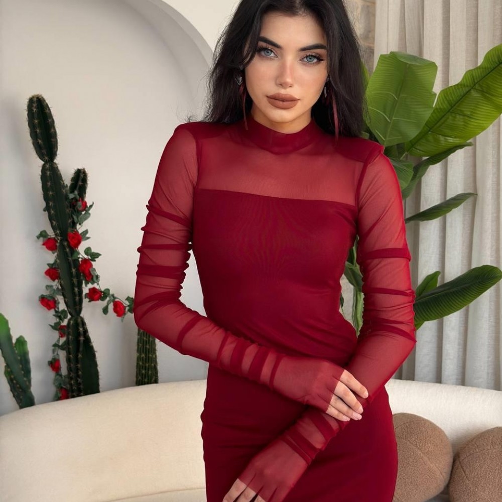 M00554-BORDO Bordo ELBİSE
